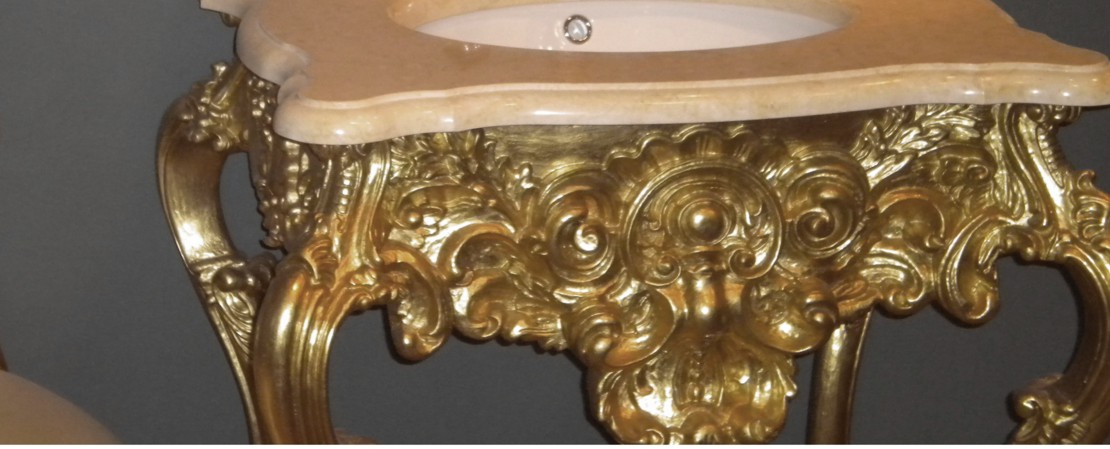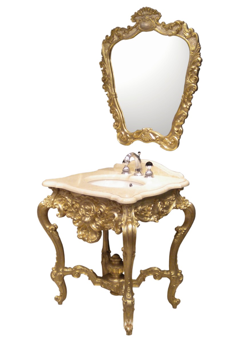 Mobile da bagno in legno intagliato a mano con specchio 4505 e piano in marmo o travertino