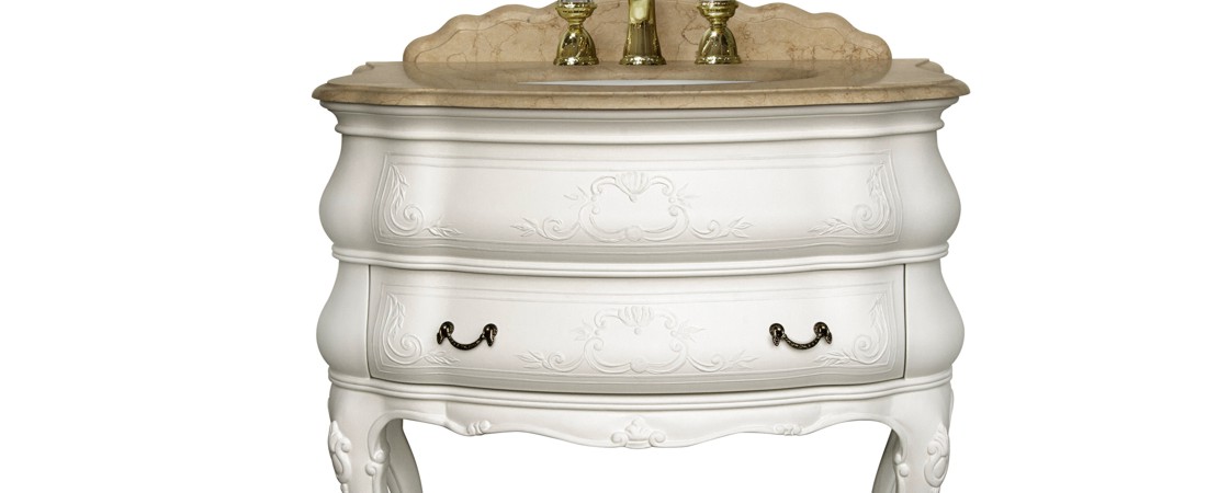 Mobile da bagno in legno intagliato con cassetto e piano in marmo o travertino