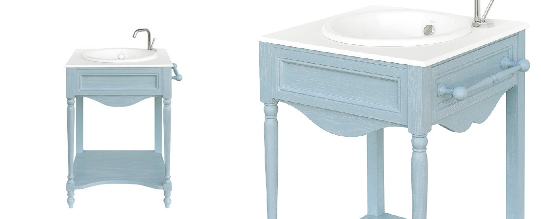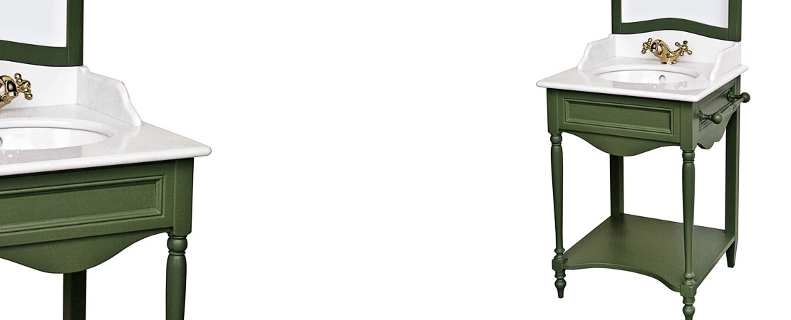 Mobile da bagno 8448 in legno con specchio e piano in marmo.