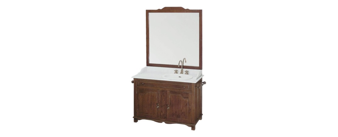 Mobile da bagno in legno con specchio e piano in marmo bianco Carrara
