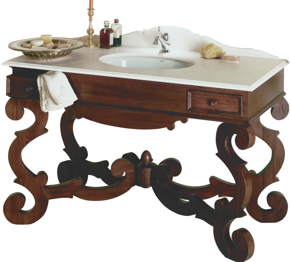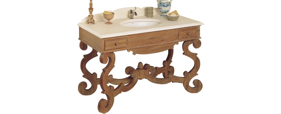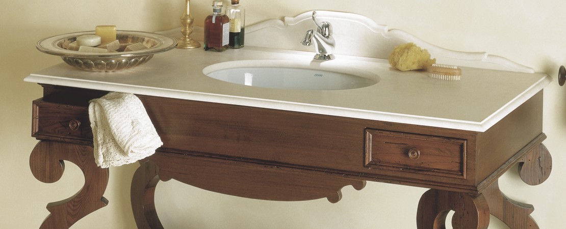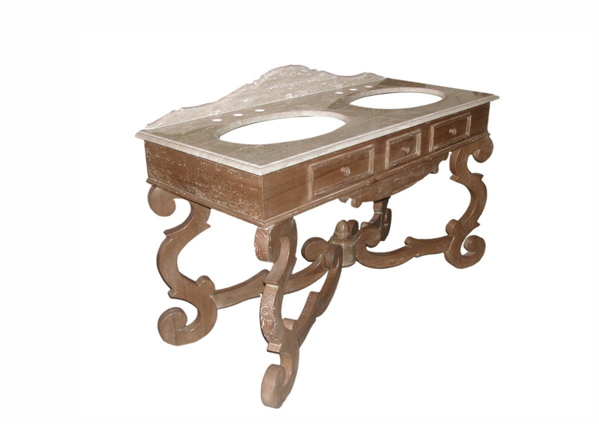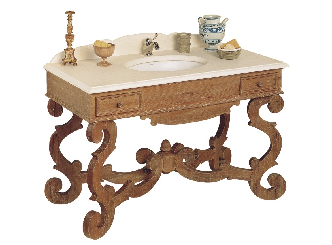 Mobile da bagno in legno con 2 cassetti, con piano in marmo o travertino