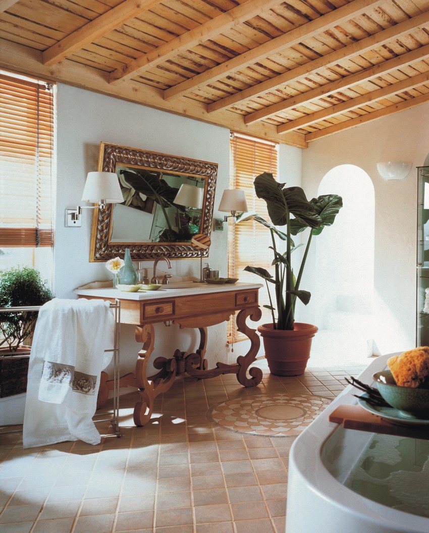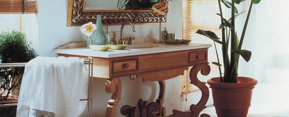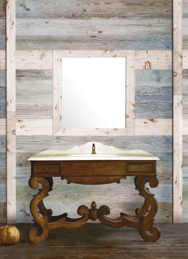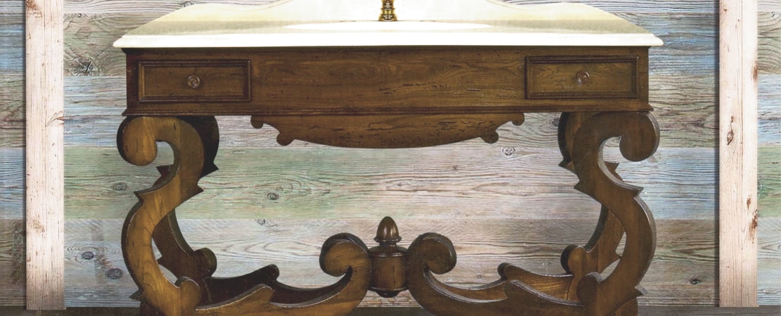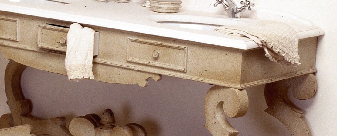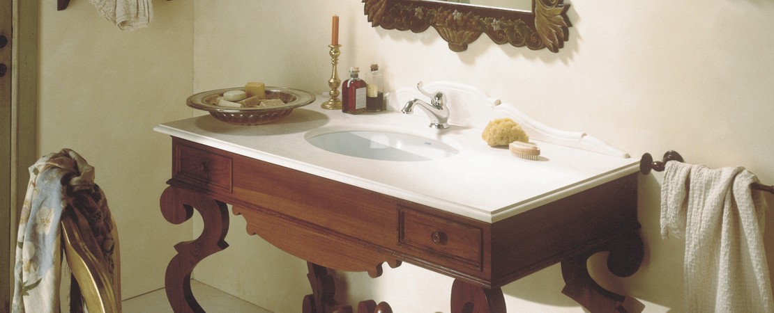 Mobile da bagno in legno con 2 cassetti, con piano in marmo o travertino
