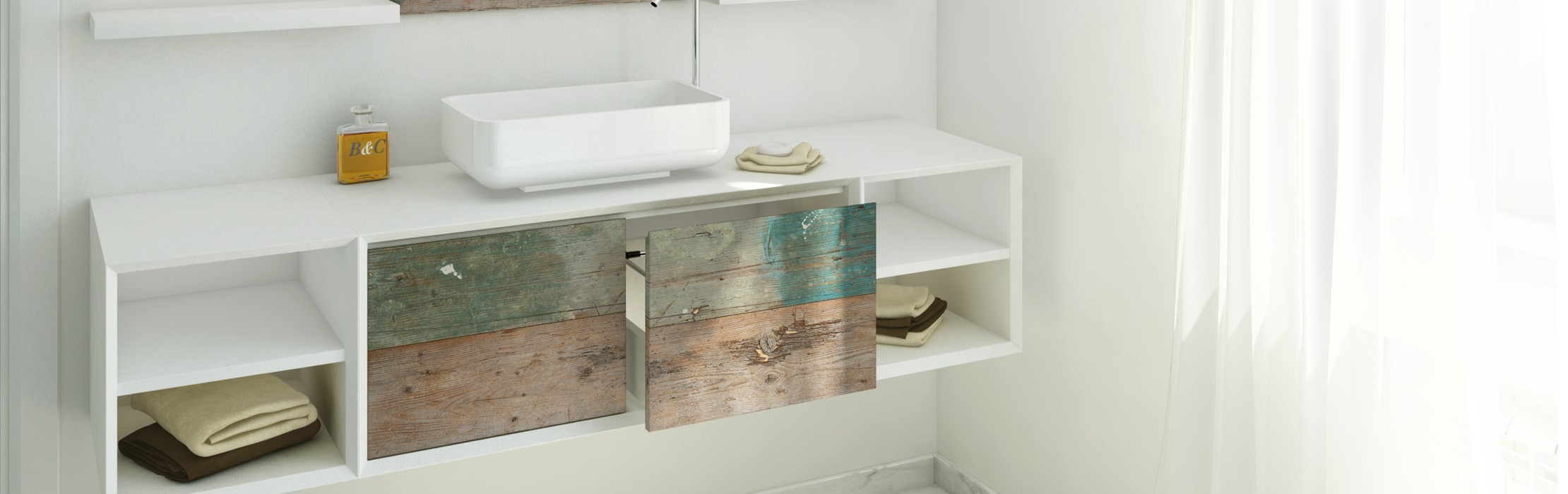 Materia Multicolor Collection is made by using solid wood matched with reclaimed wood, offered in delicate customizable colours finish, the Multicolor finish, or in natural wood colours.