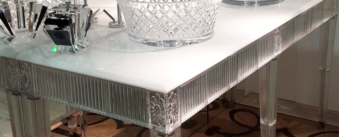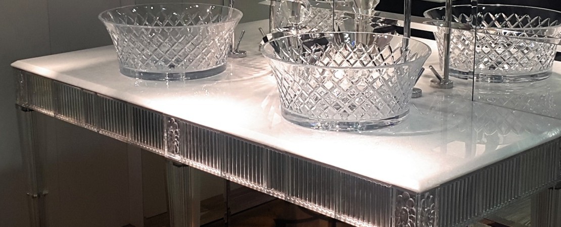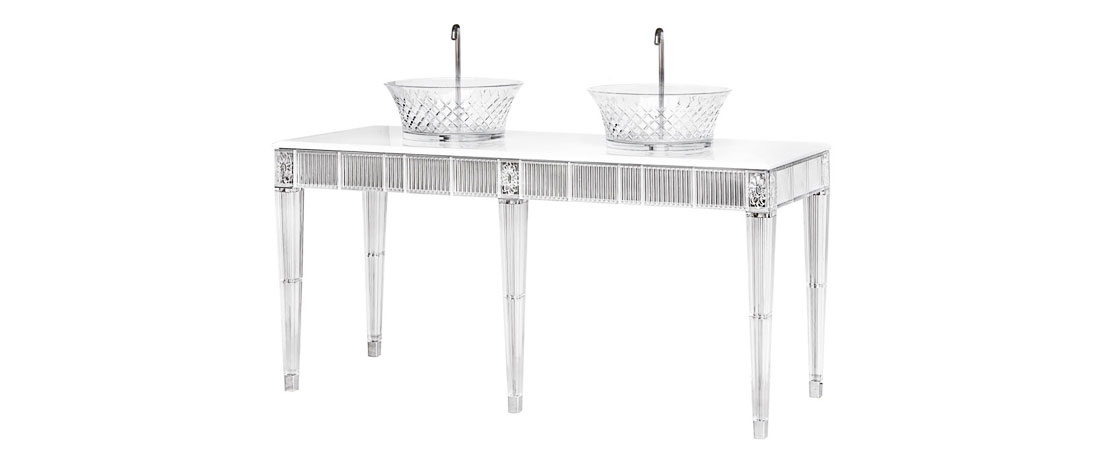 Bath console double basin in 24%lead Crystal with white cristallino marble top