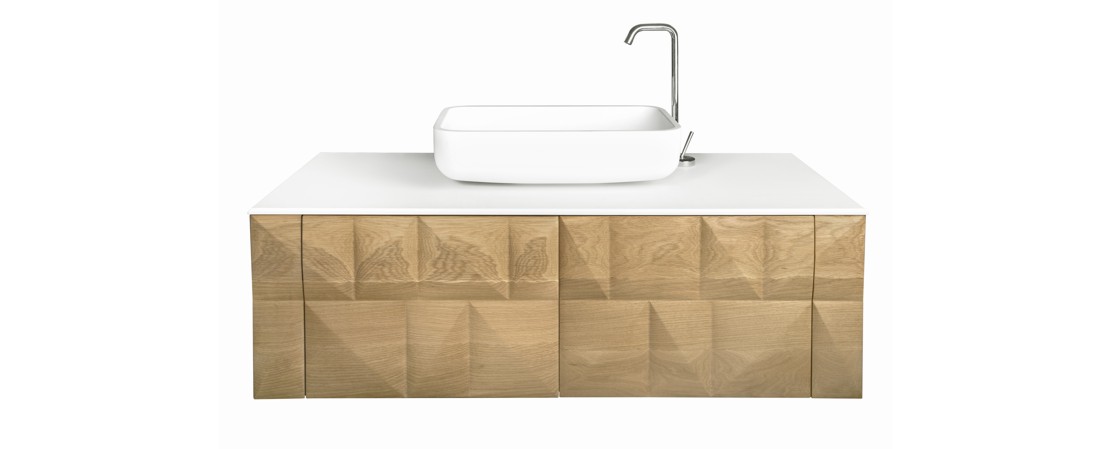 Bath-console in carved Oak with 2 drawers and Stonelight top