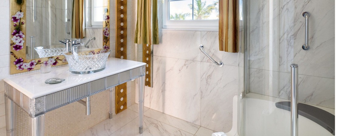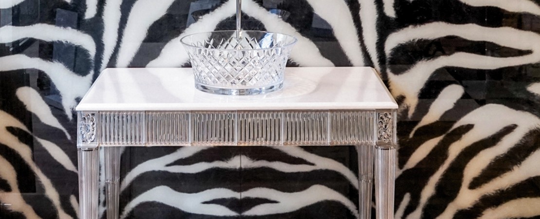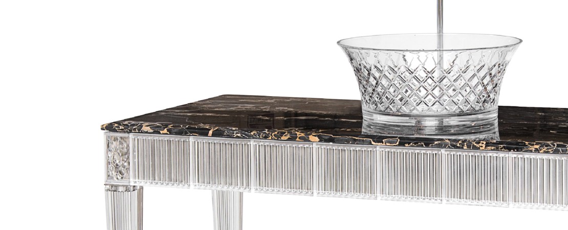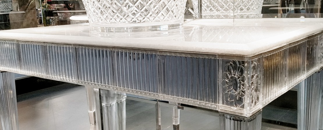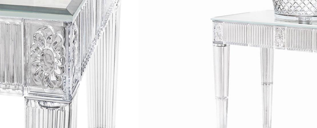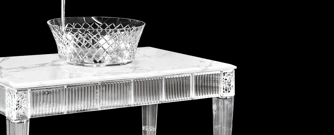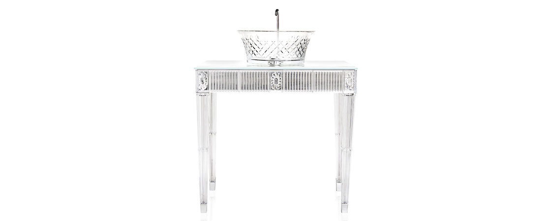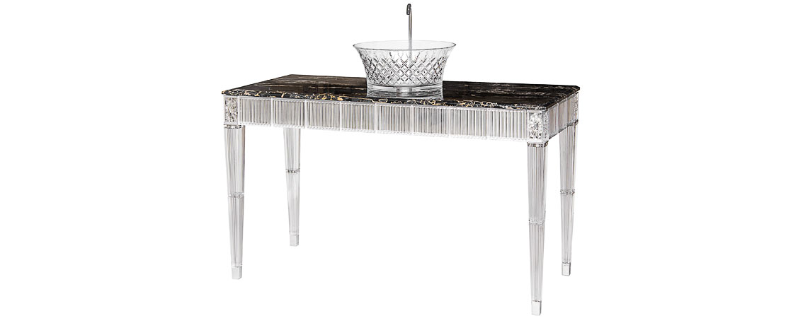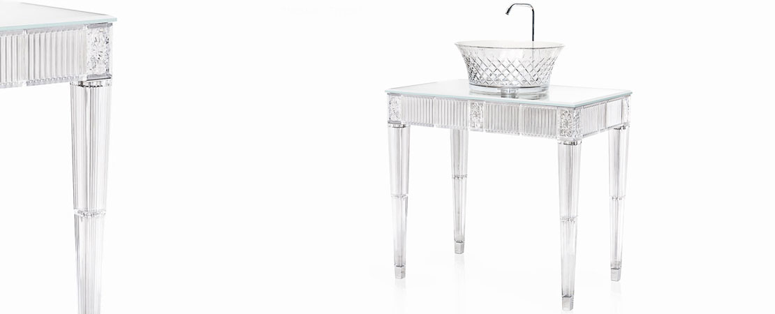 Bath console 2544 in Crystal 24%lead with white cristallino marble or mirrored glass top