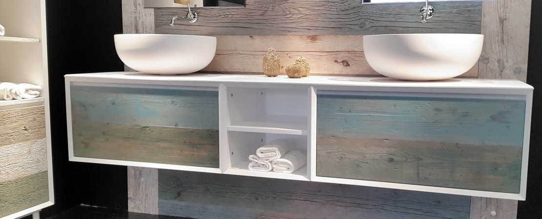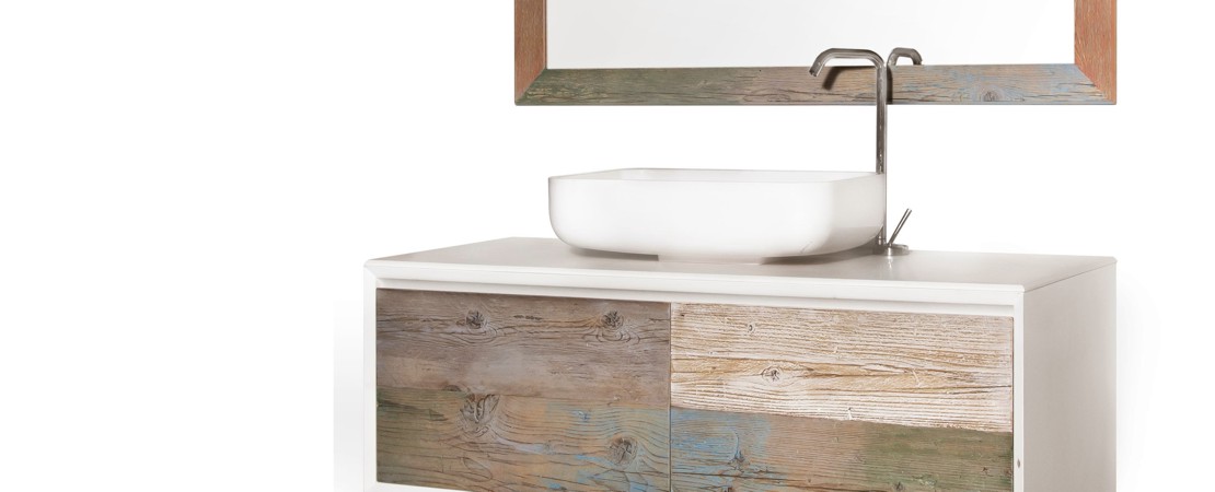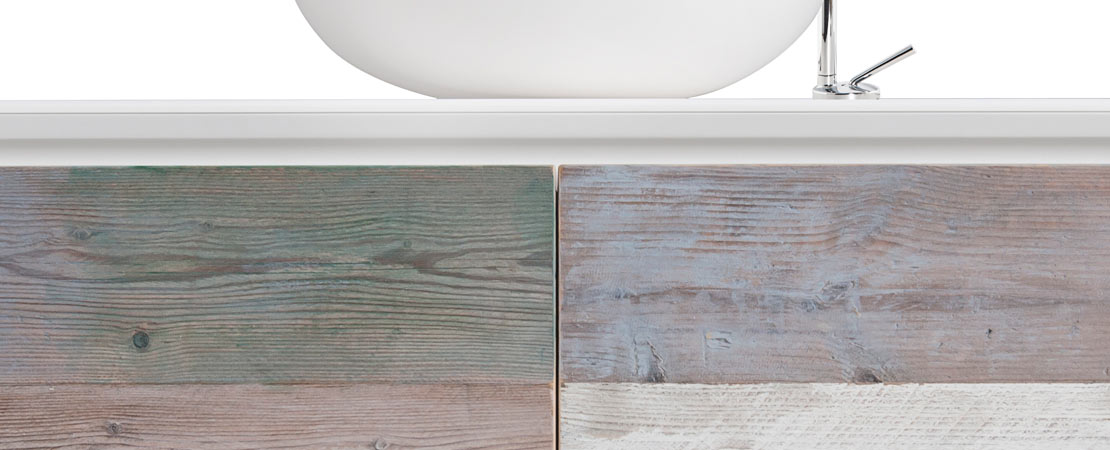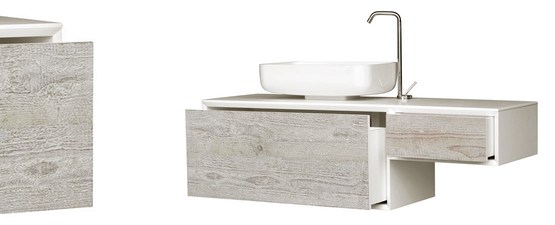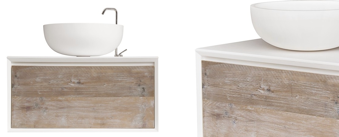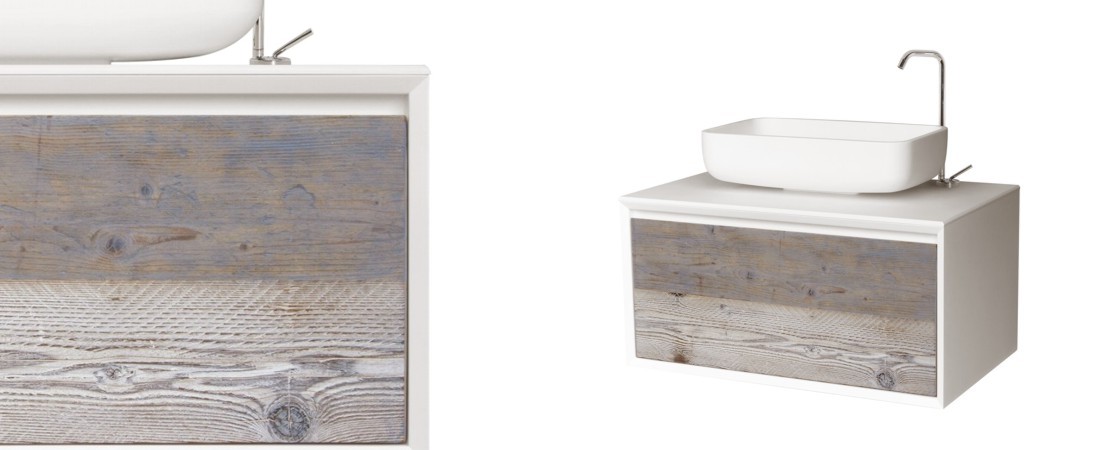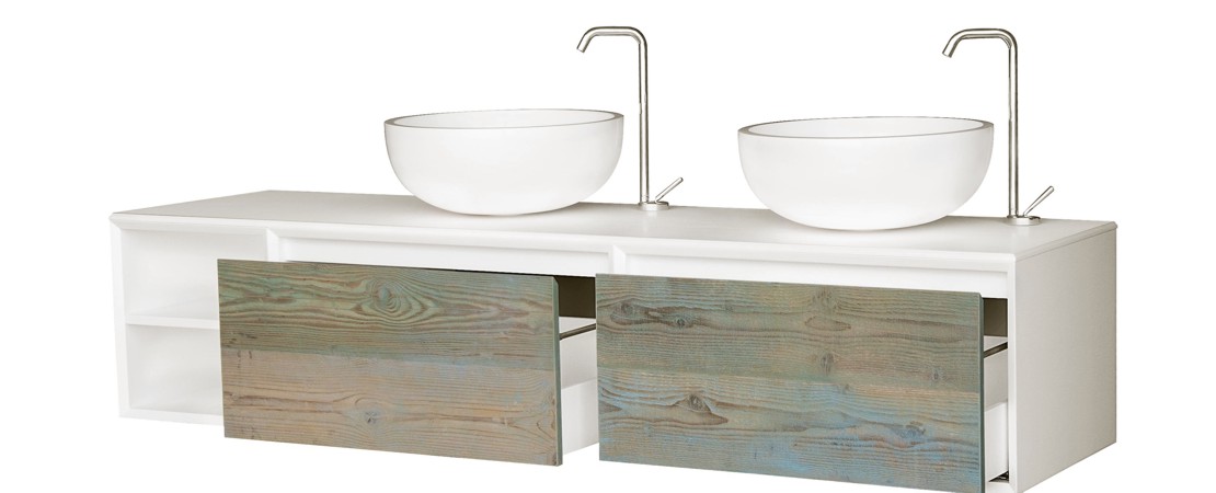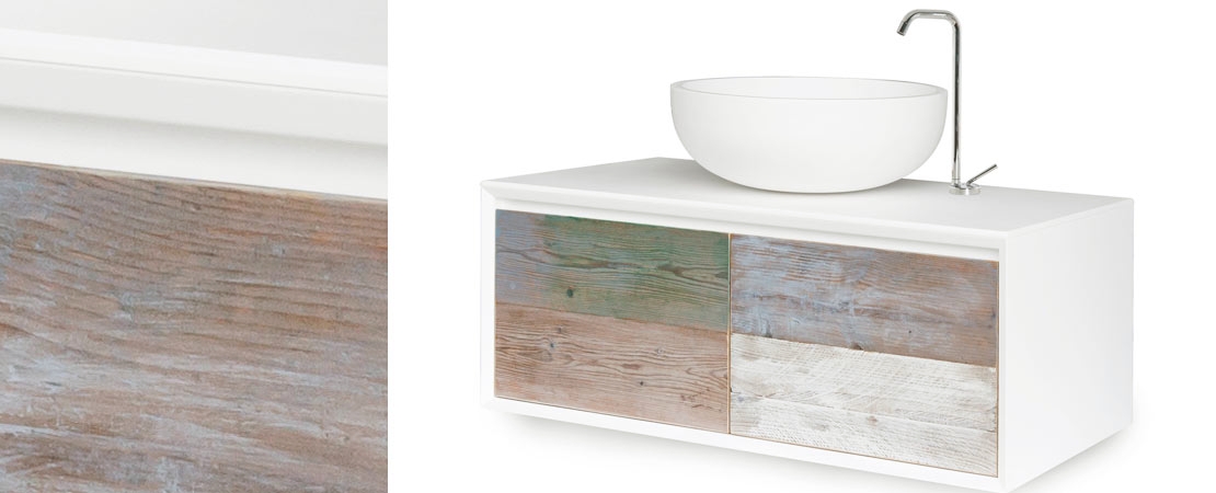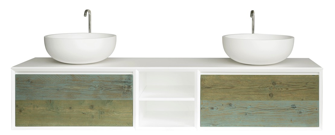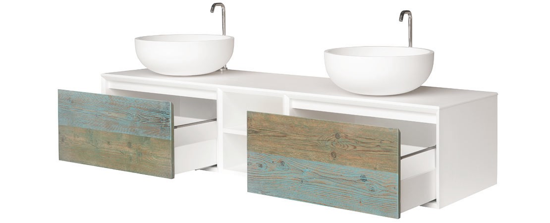Bath console 2260 in matt lacquered wood with drawers in reclaimed Fir wood and Stonelight top