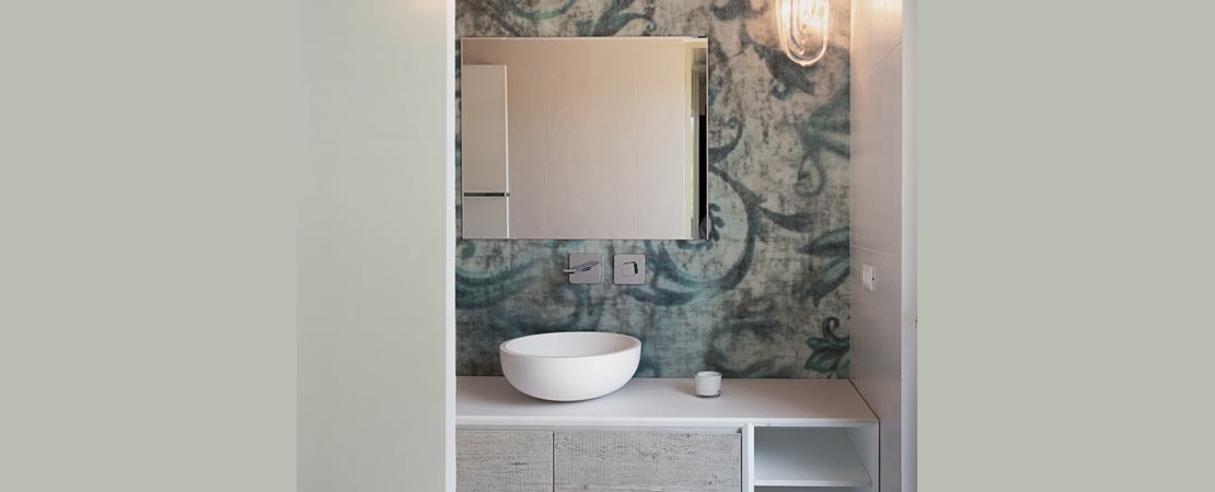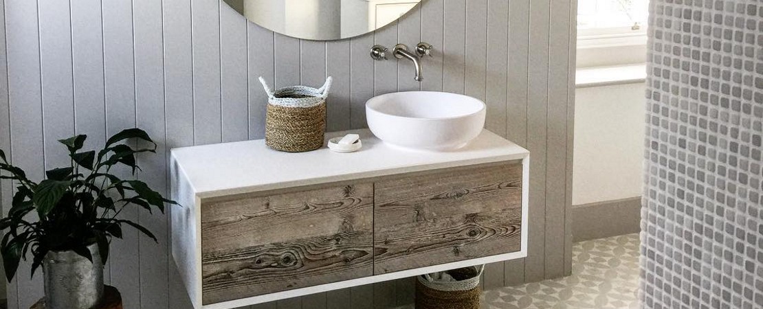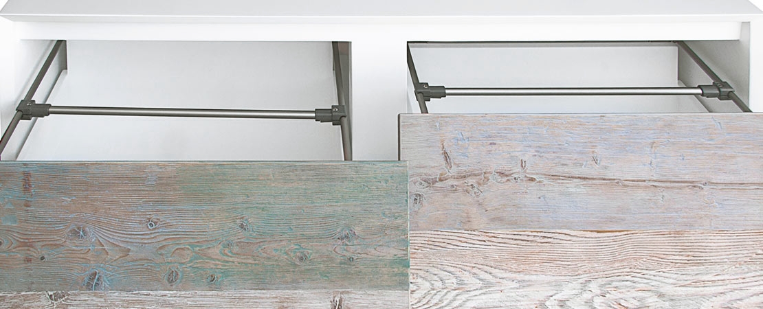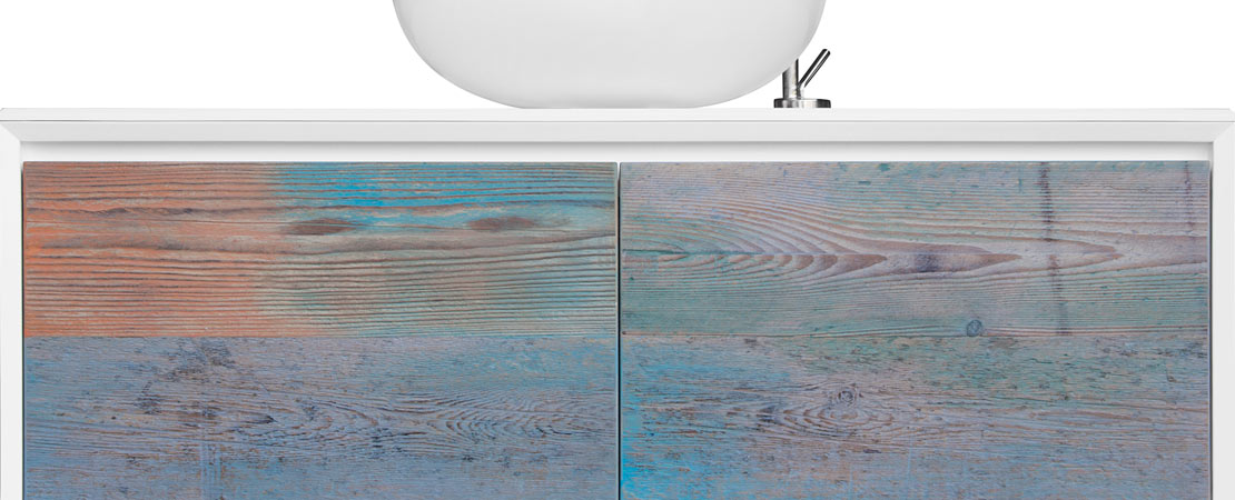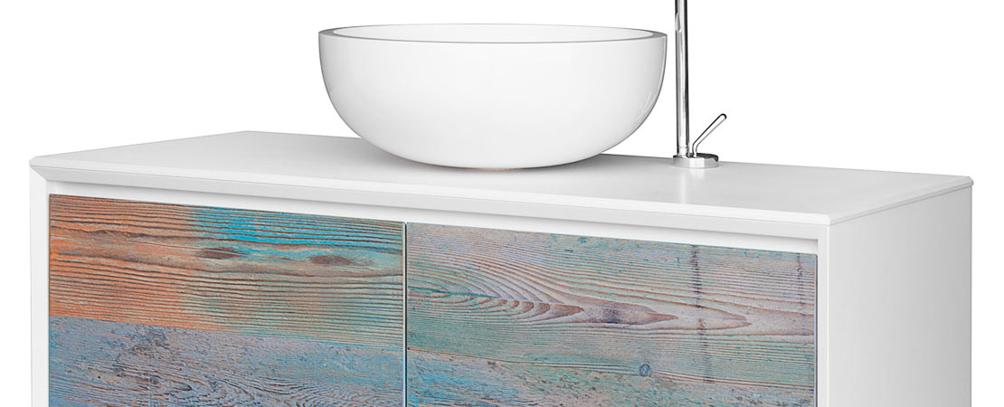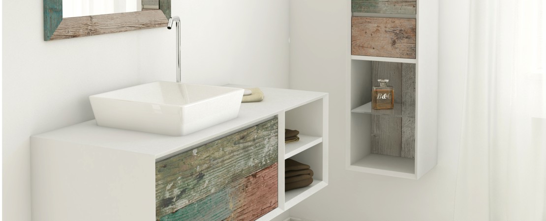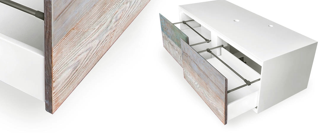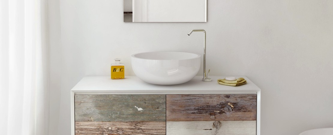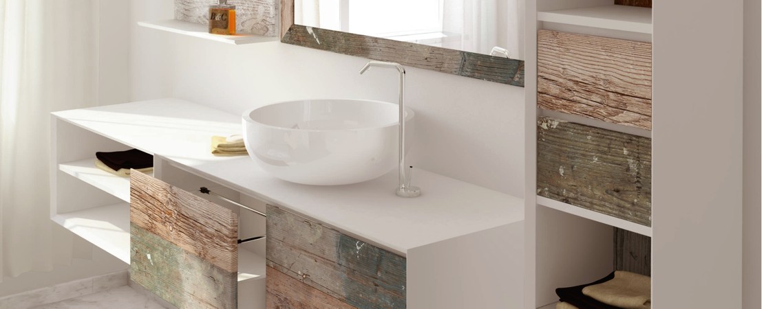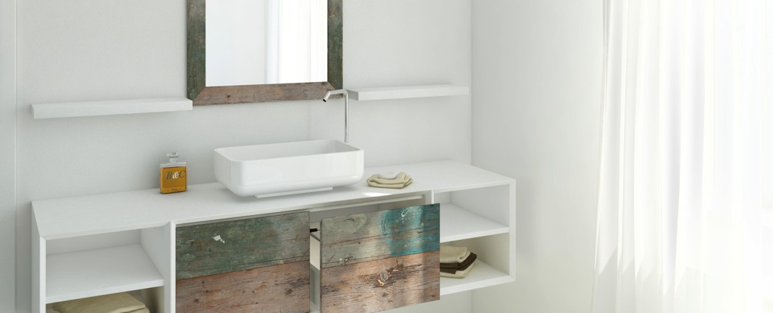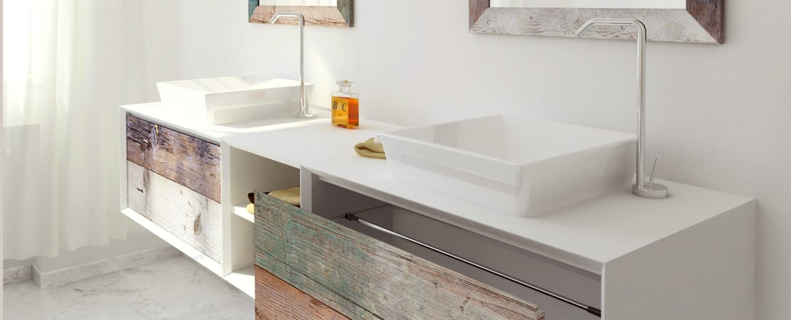 Bath console 2260 in matt lacquered wood with drawers in reclaimed Fir wood and Stonelight top