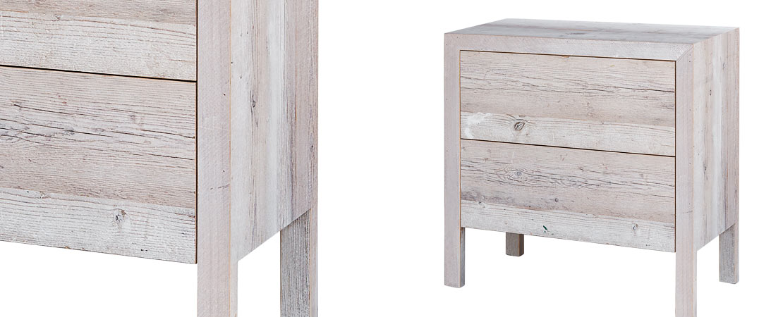 Chest of drawers in reclaimed Fir wood with 2 drawers