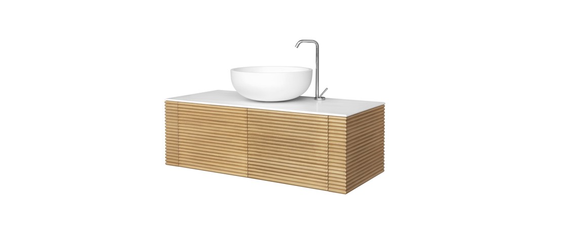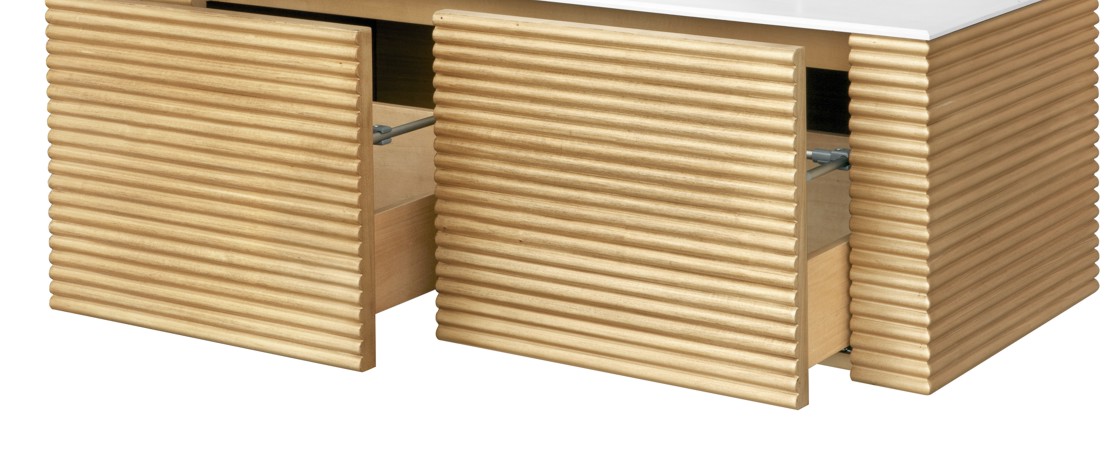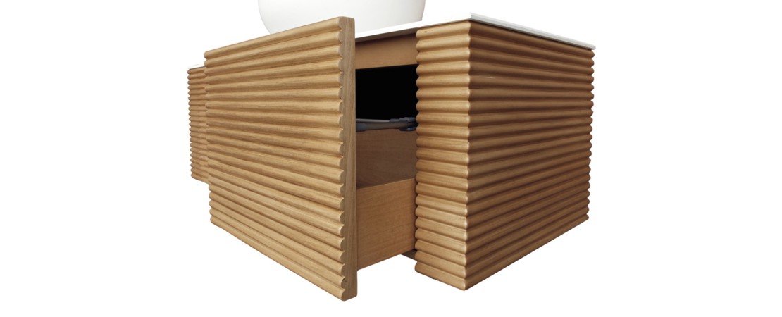 Bath-console in carved Oak with 2 drawers and Stonelight top