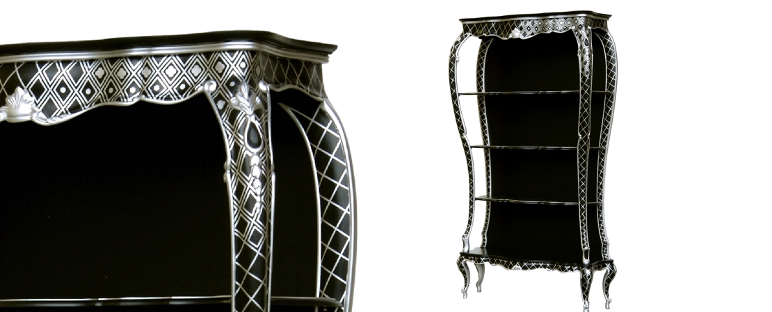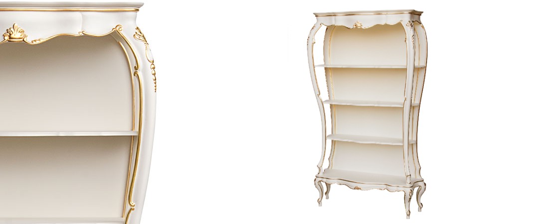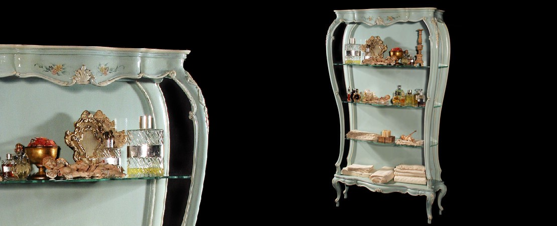 Etagere unit 8598 in carved wood with wooden or glass shelves