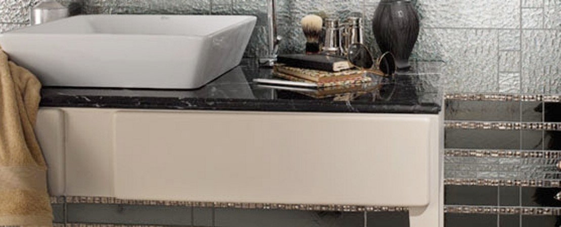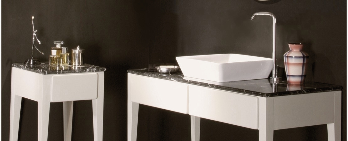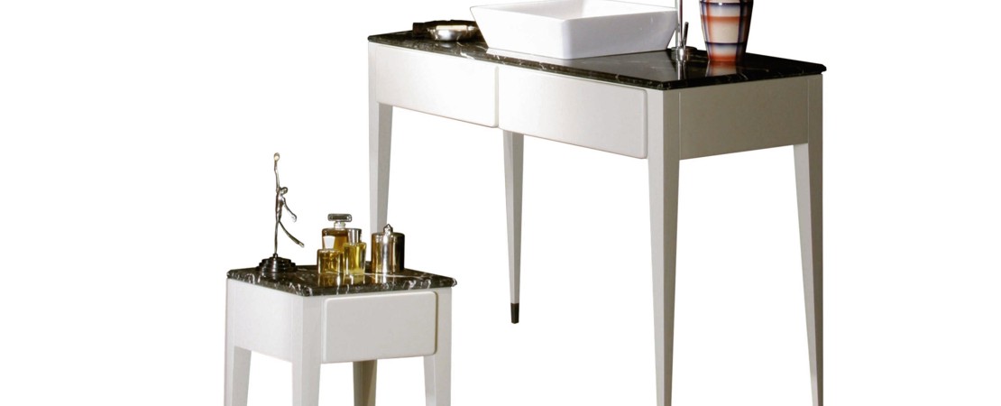 Vanity unit in wood with 2 drawers and black Marquina marble top