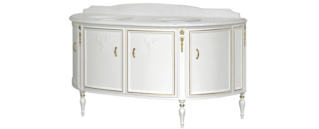 Vanity unit double basin in wood with white Carrara marble top – Louvre Collection