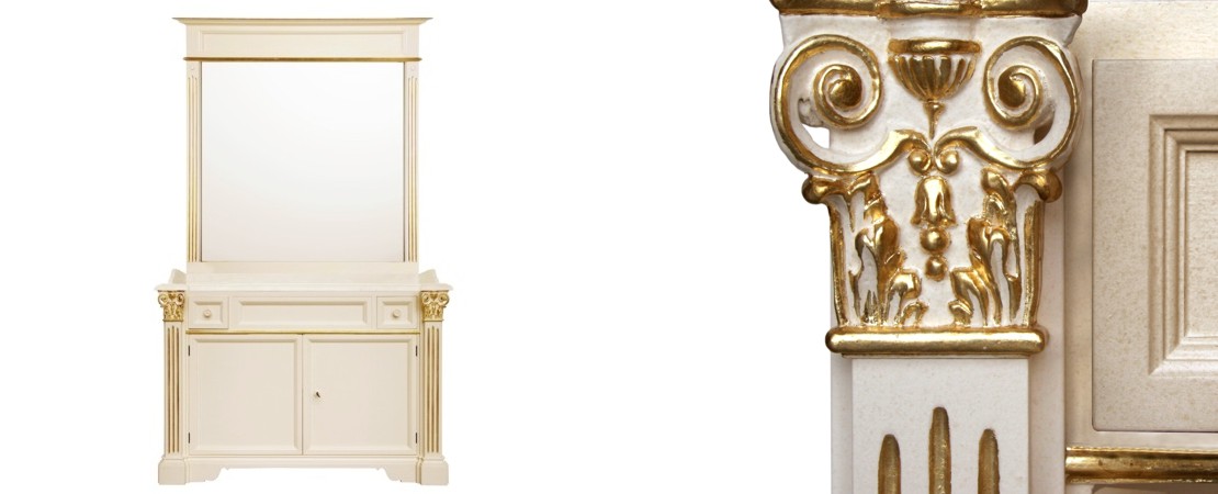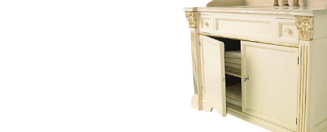 Vanity unit in wood with 2 drawers and Travertine top – Impero Collection