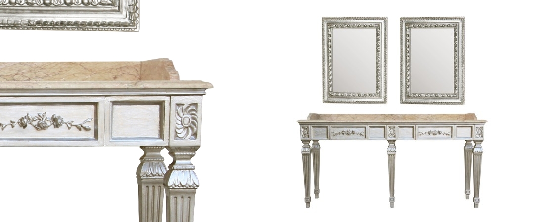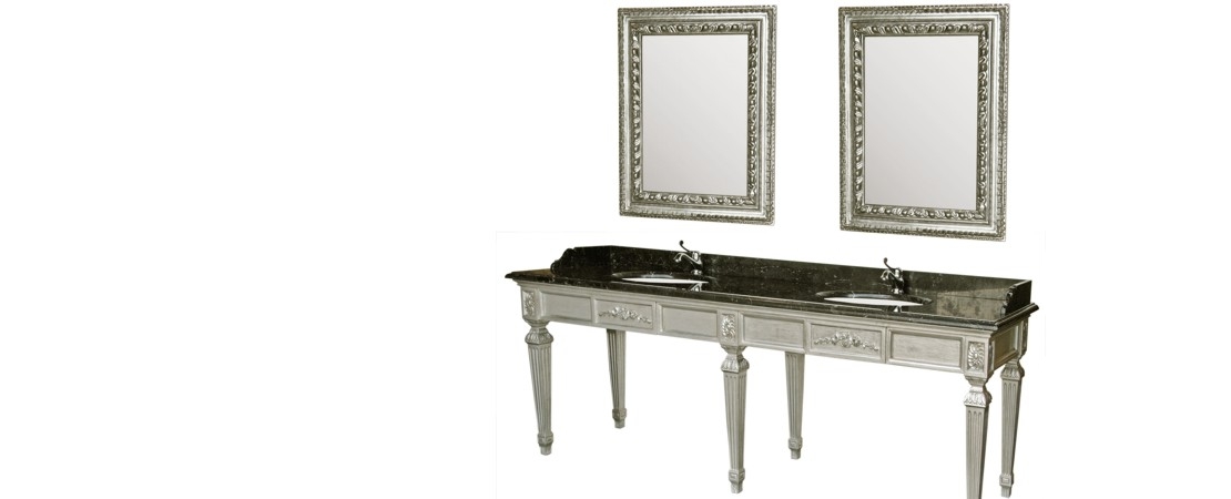 Vanity unit Empire style double basin in carved wood with marble or travertine top