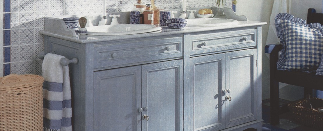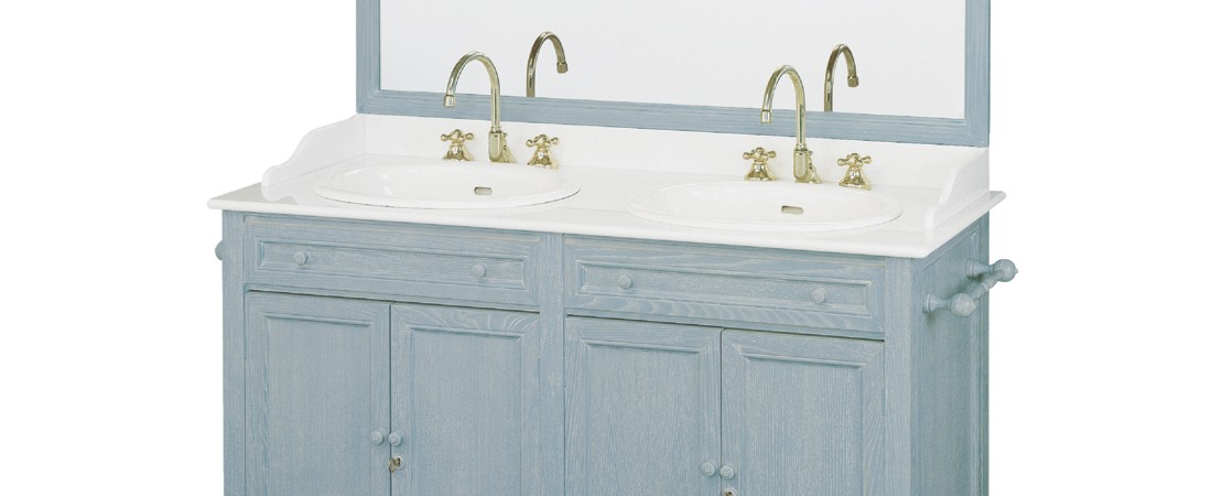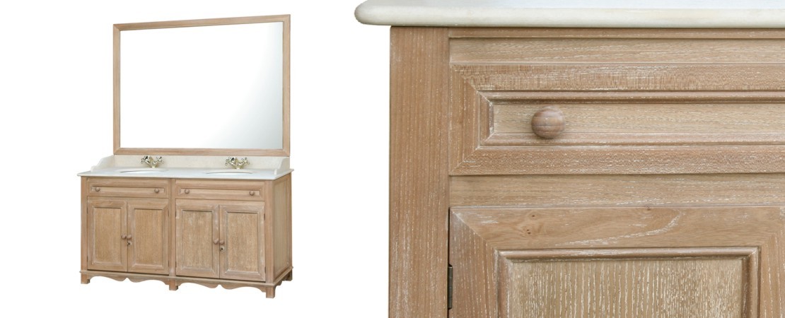 Vanity unit double basin in wood with mirror and white Carrara marble top