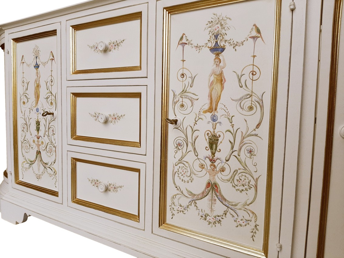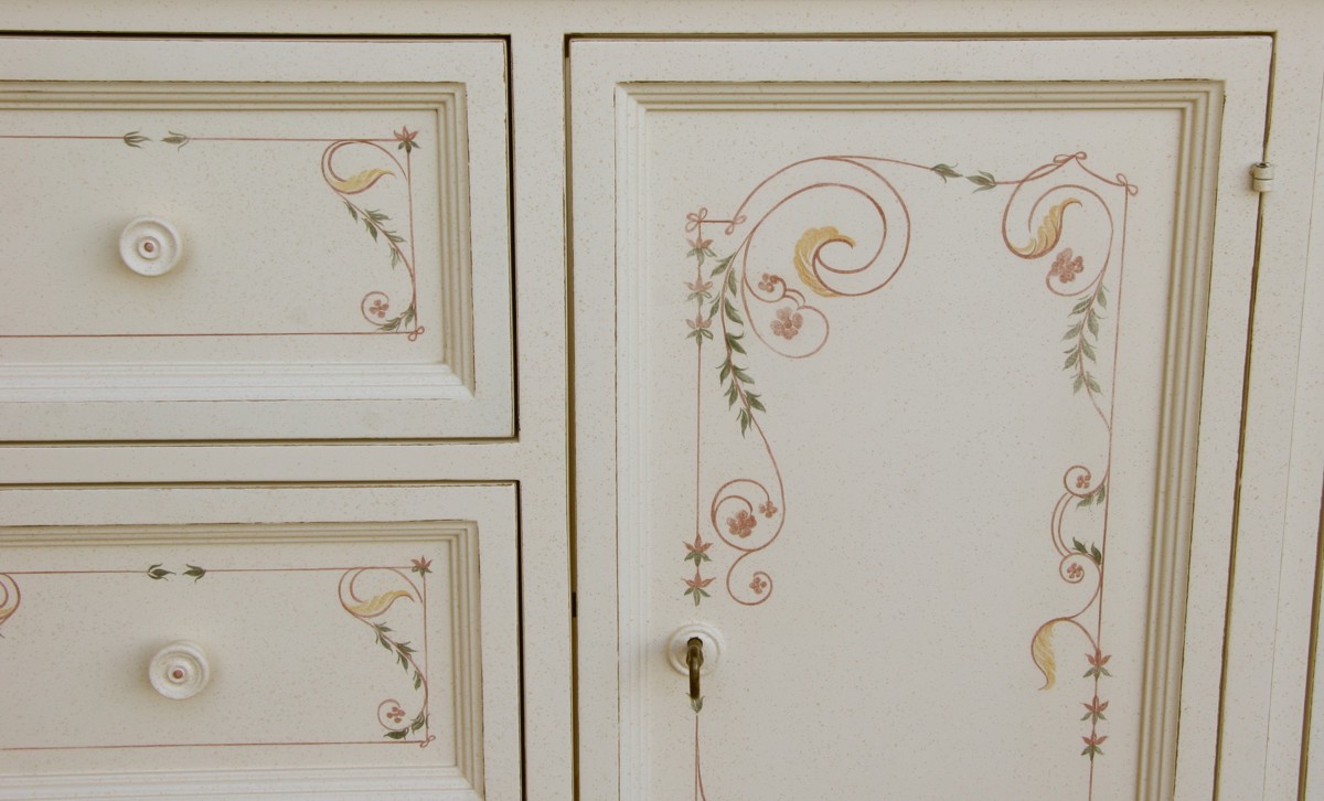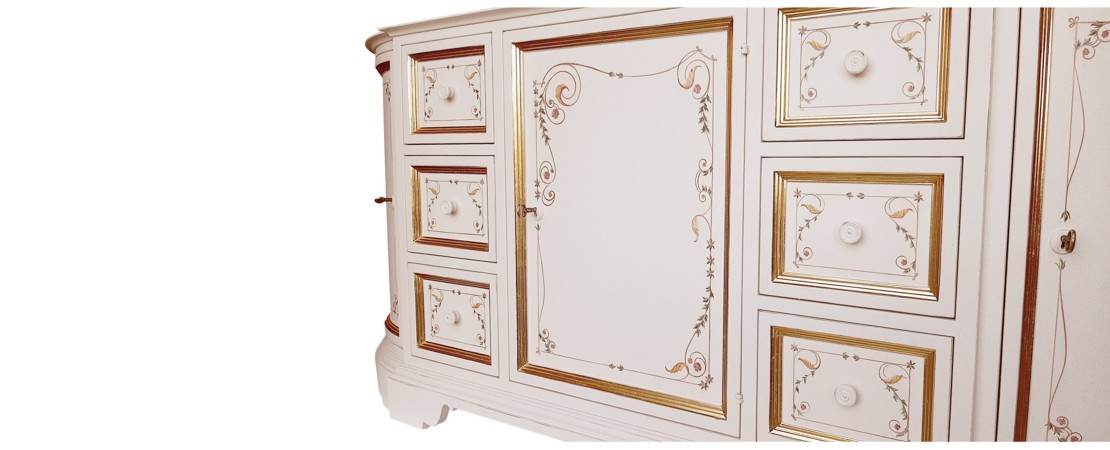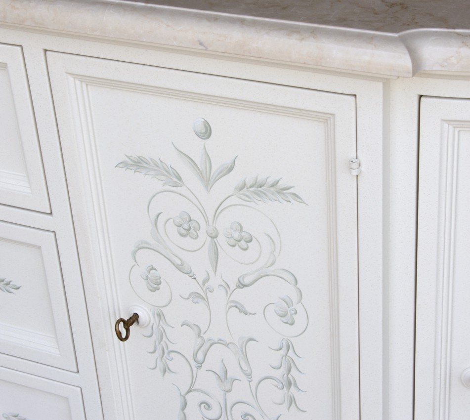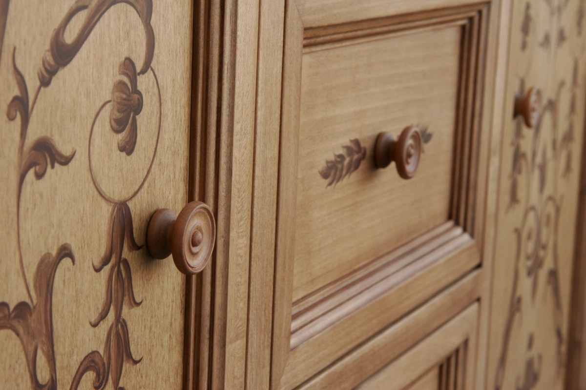 Vanity unit double basin in wood with 3 drawers and 4 doors, with marble or travertine top