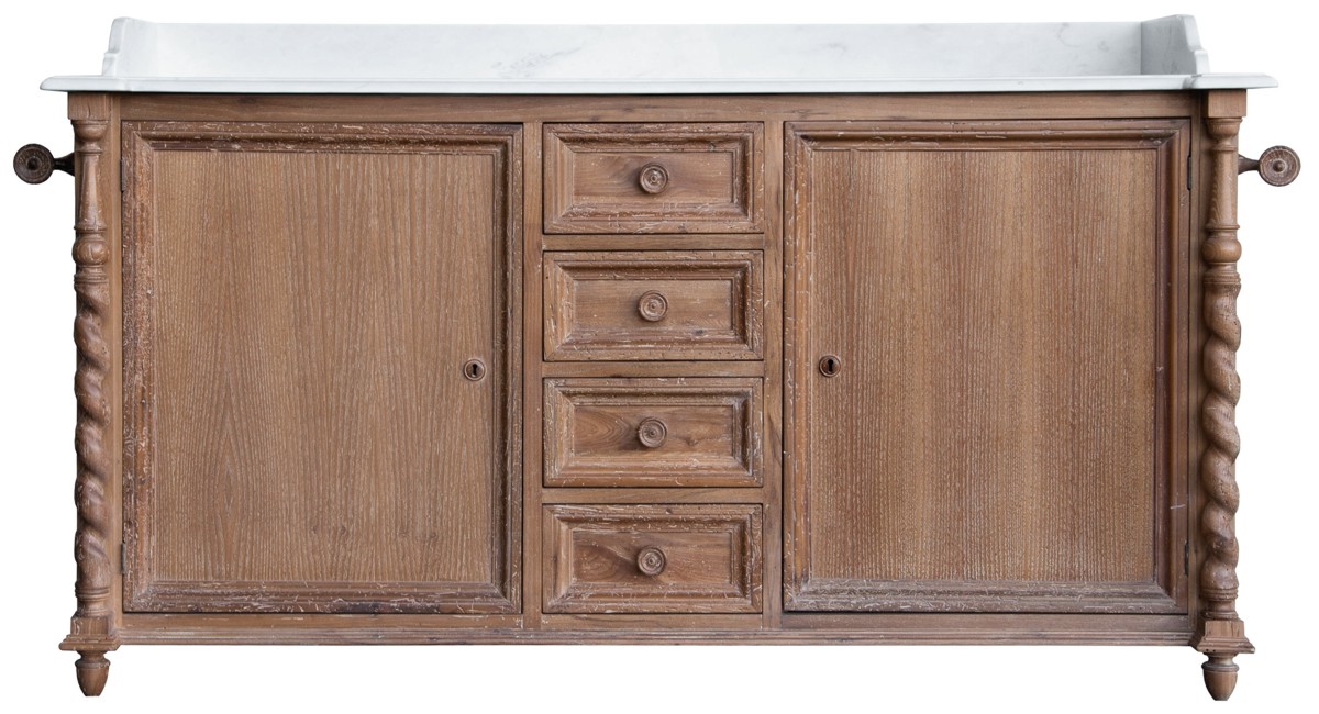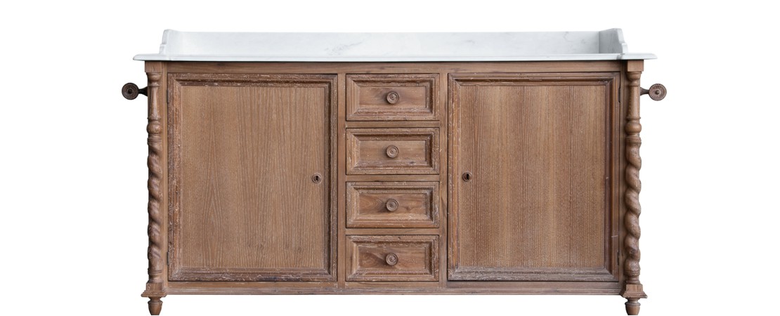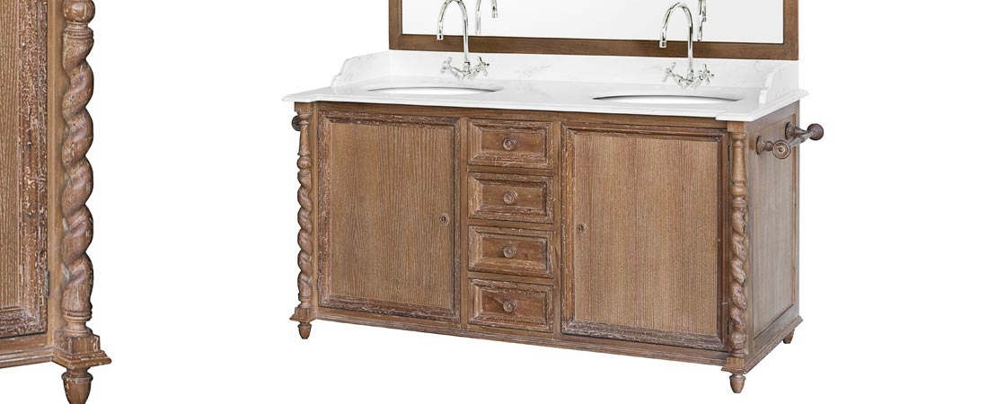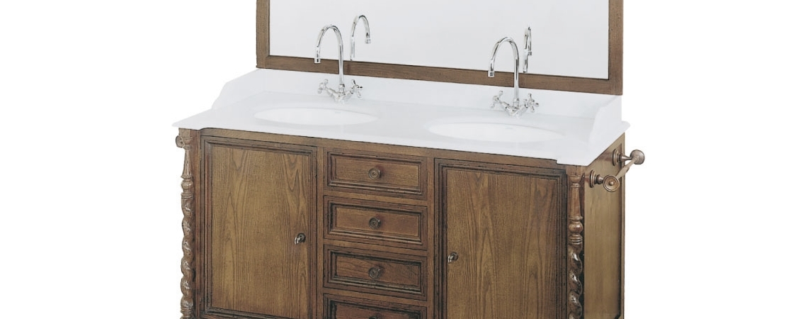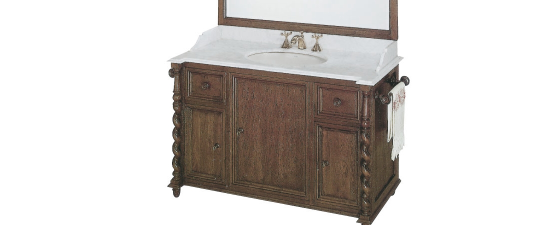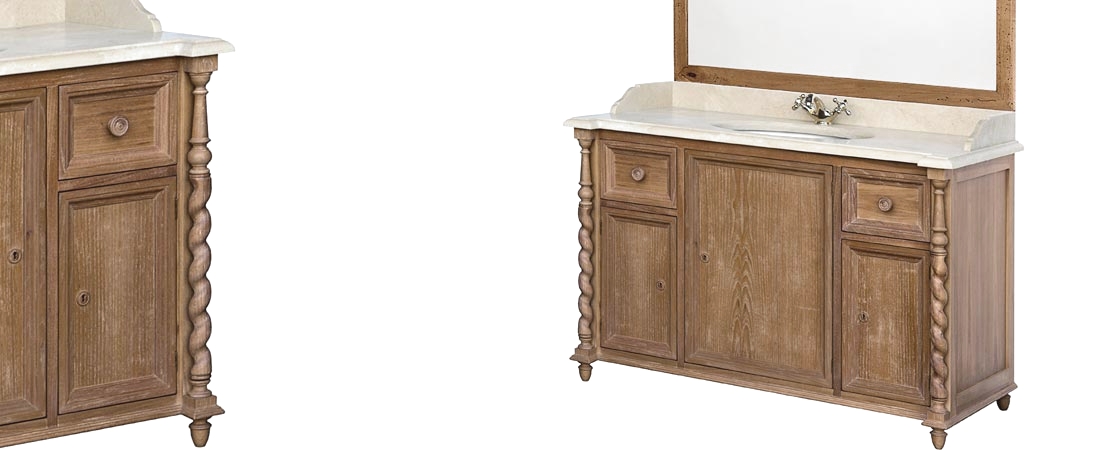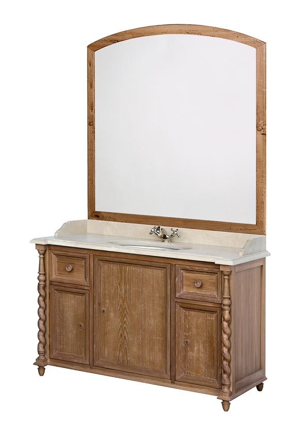 Vanity unit in wood with 2 drawers, with mirror and white Carrara marble top