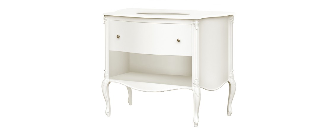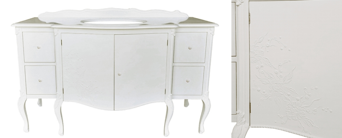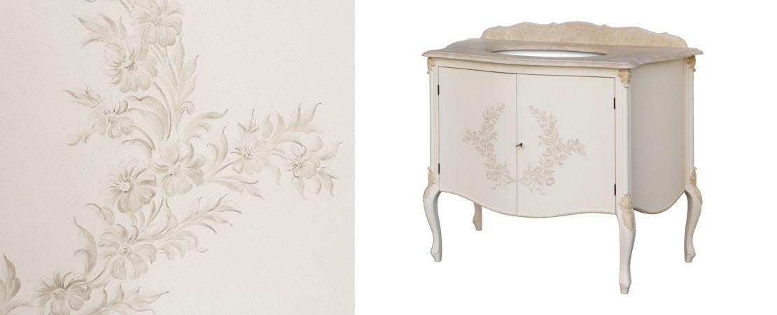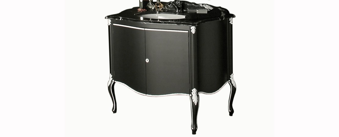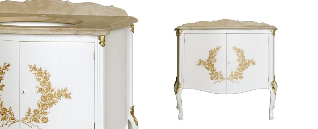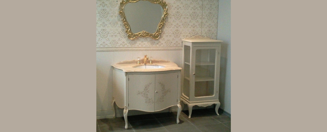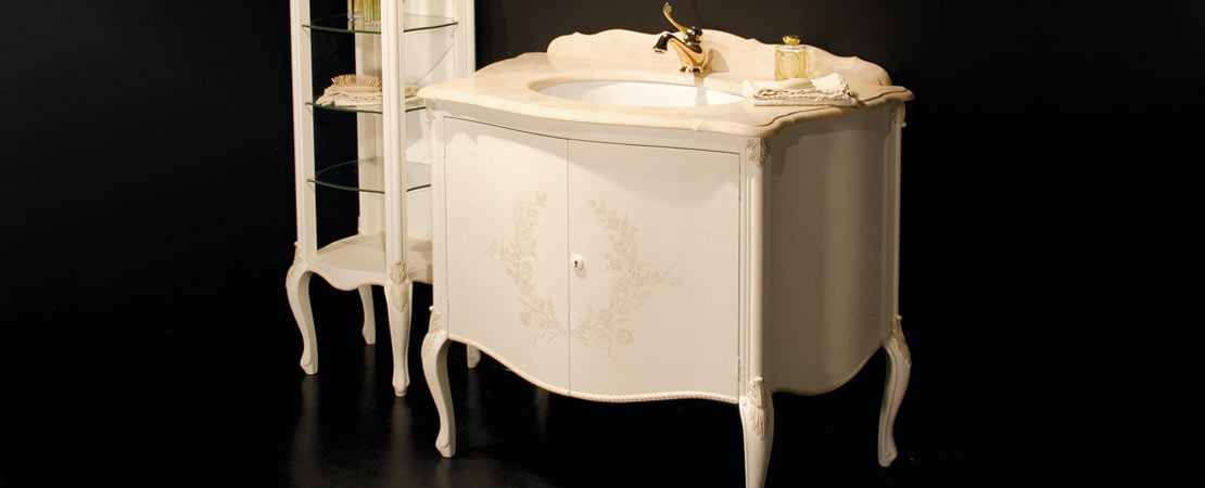 Vanity unit in wood with marble or travertine top