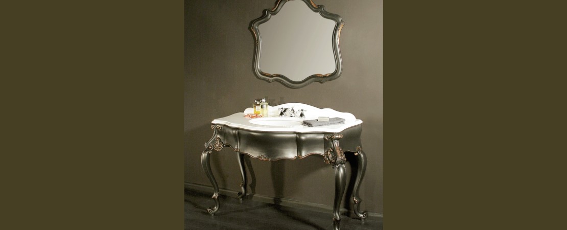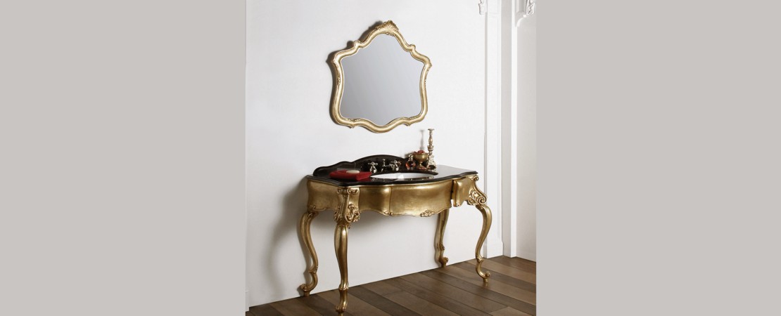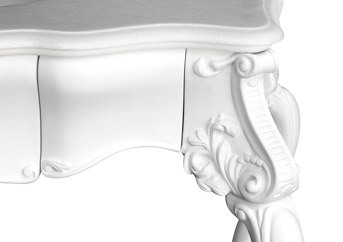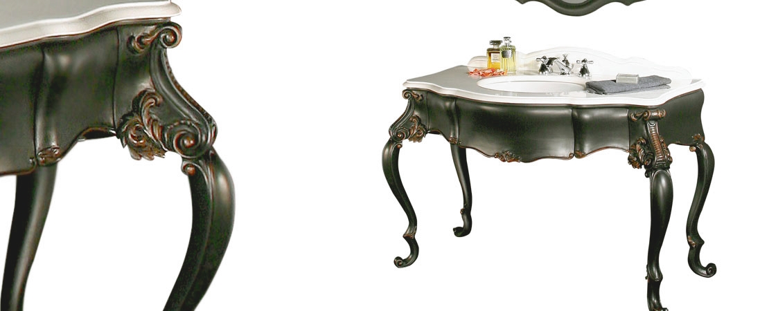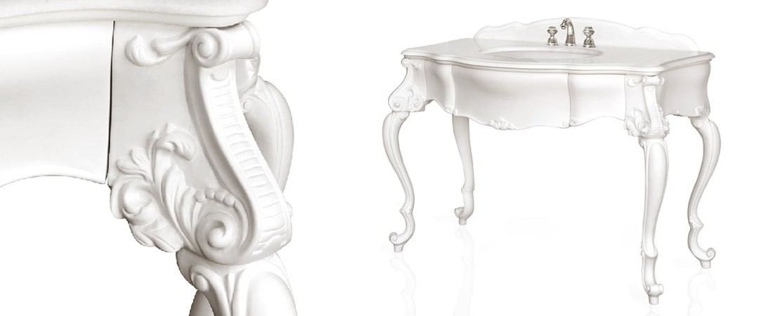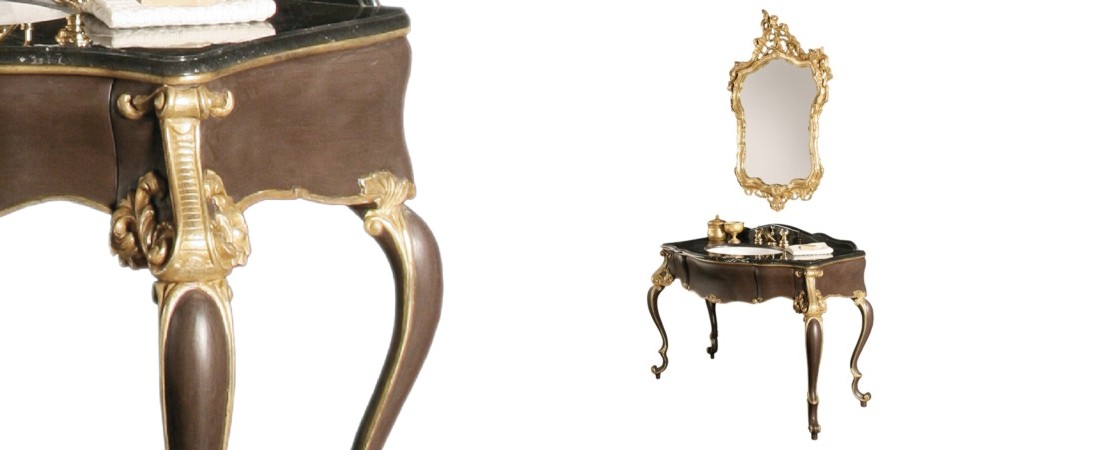 Vanity unit in carved wood with 2 drawers, with marble or travertine top