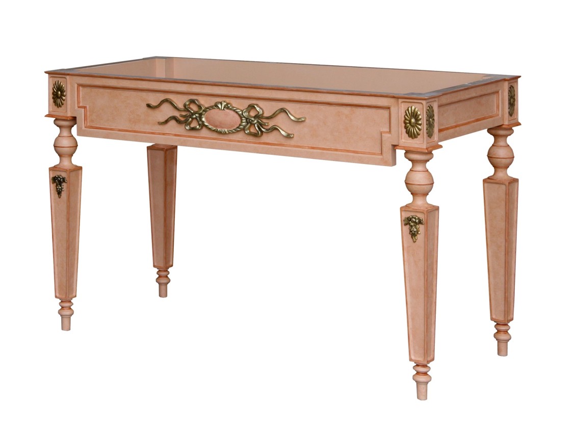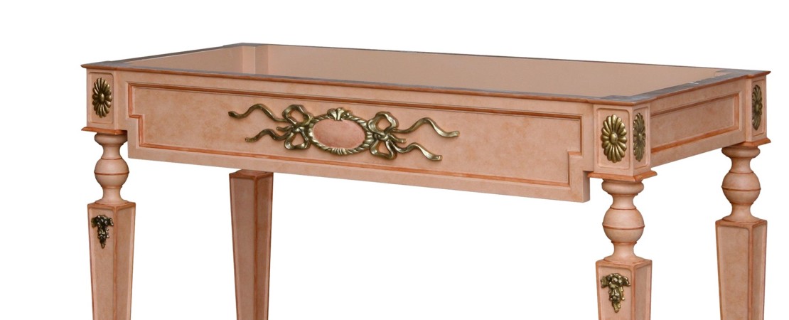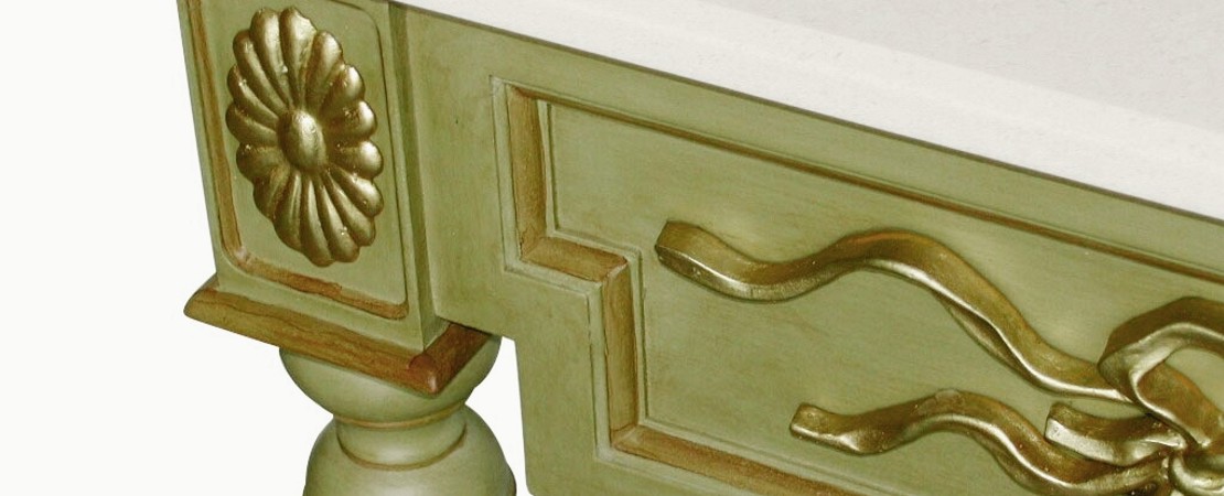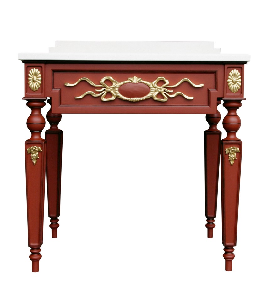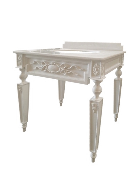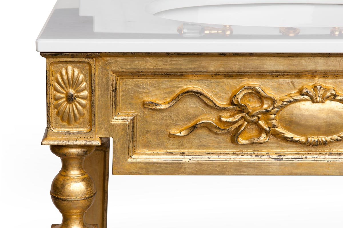 Vanity unit in wood with carvings, with mirror and marble or travertine top