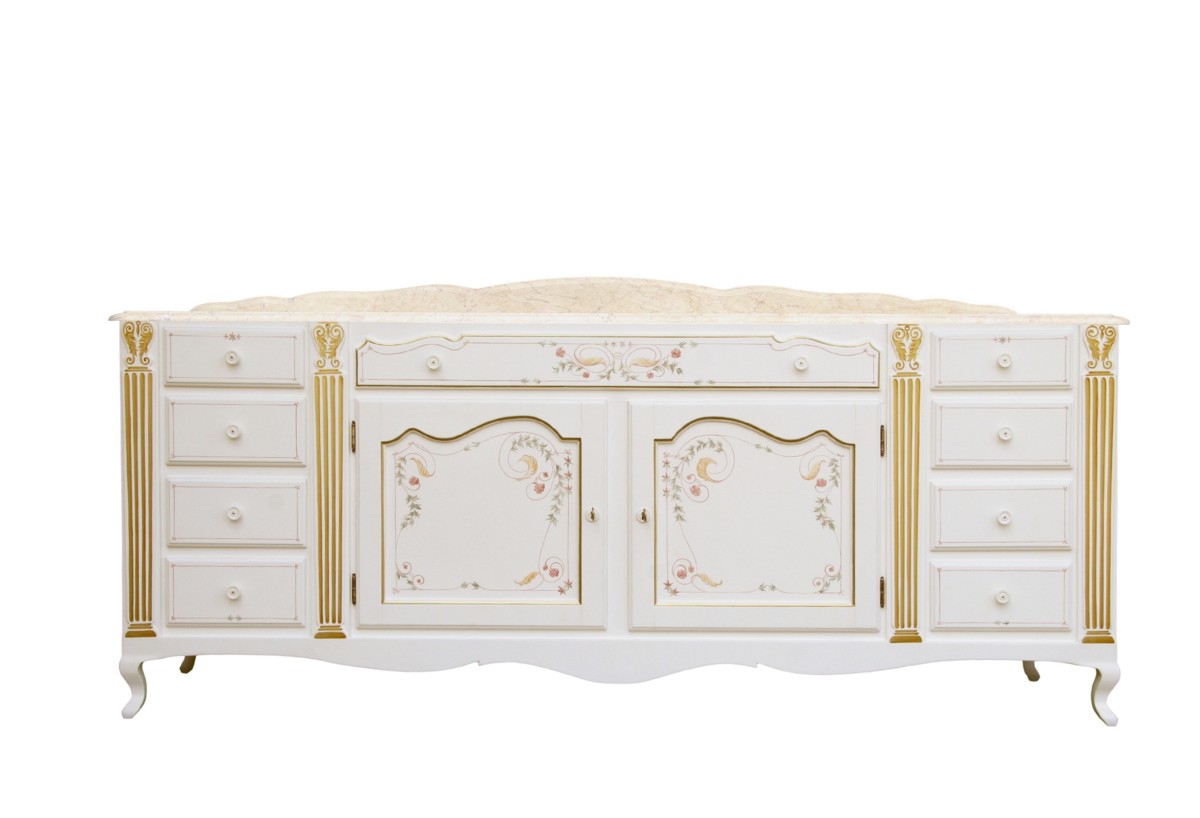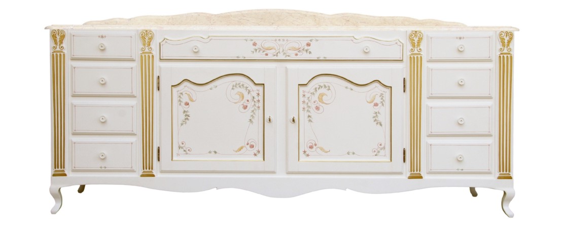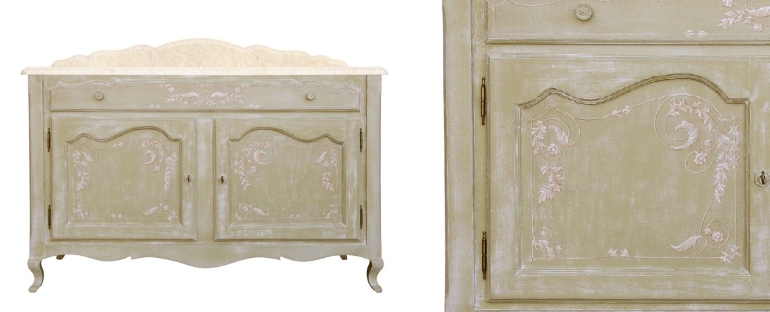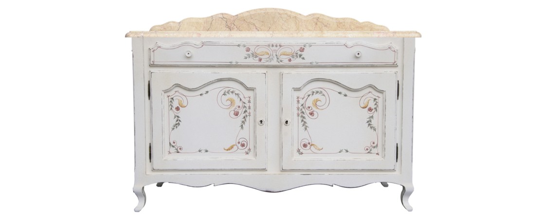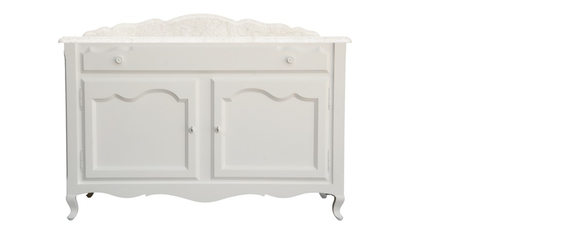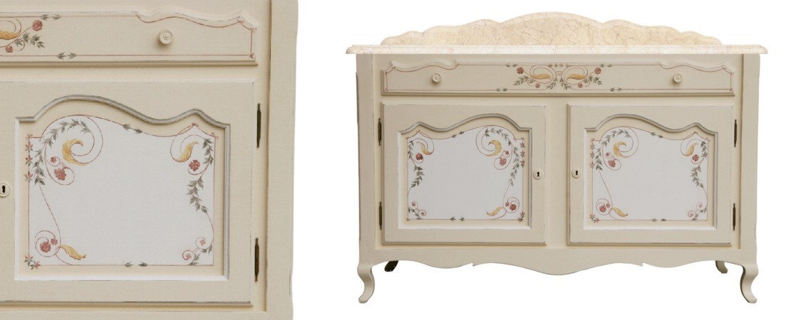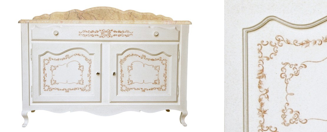 Vanity unit provencal style in wood, with mirror and marble or travertine top