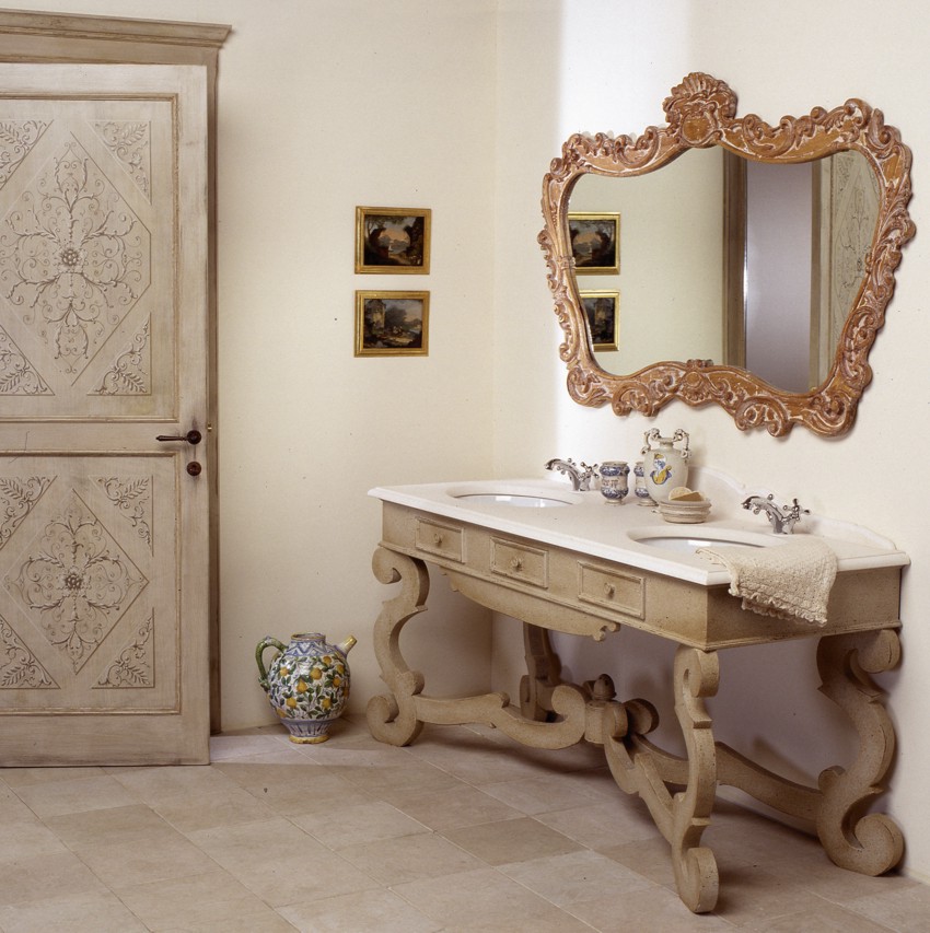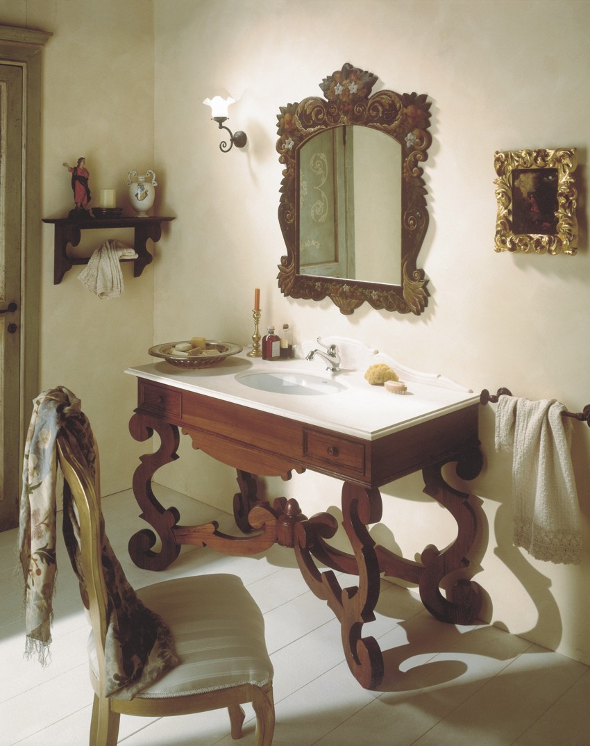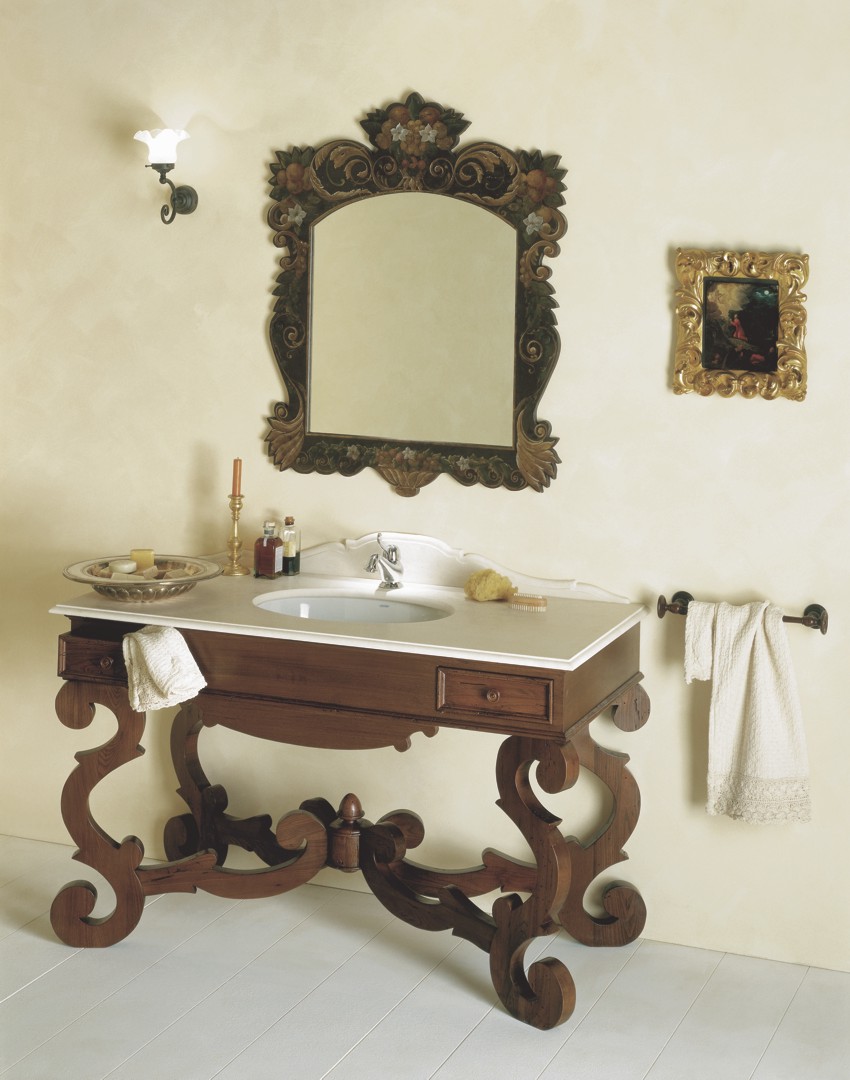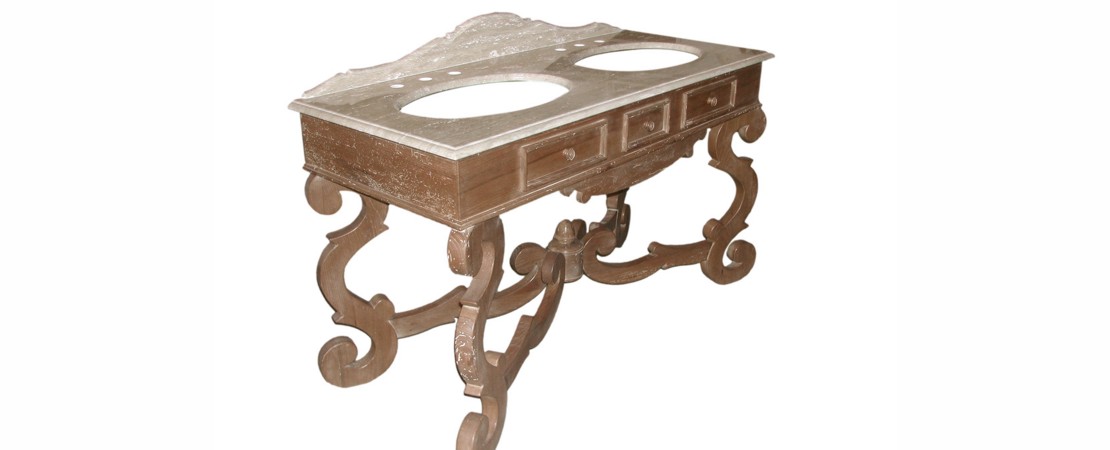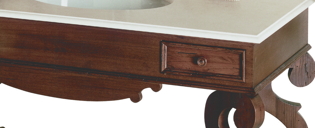 Vanity unit in wood with 2 drawers, with marble or travertine top