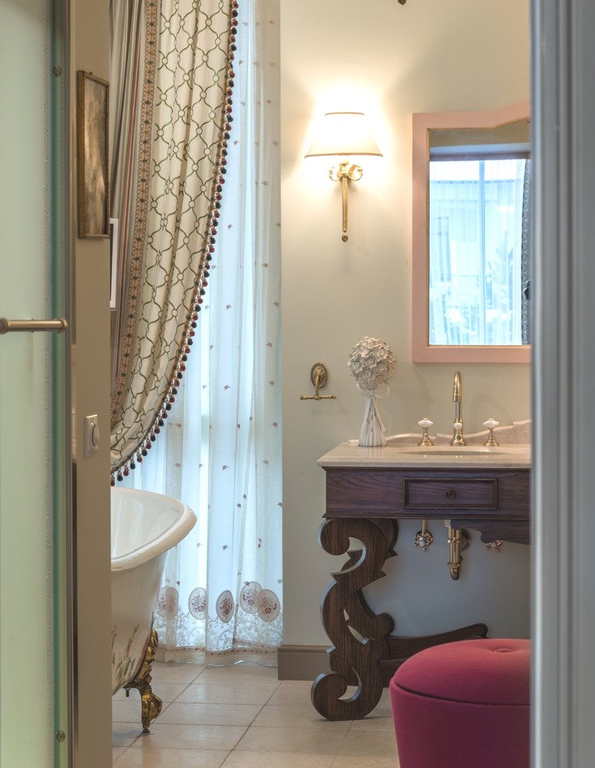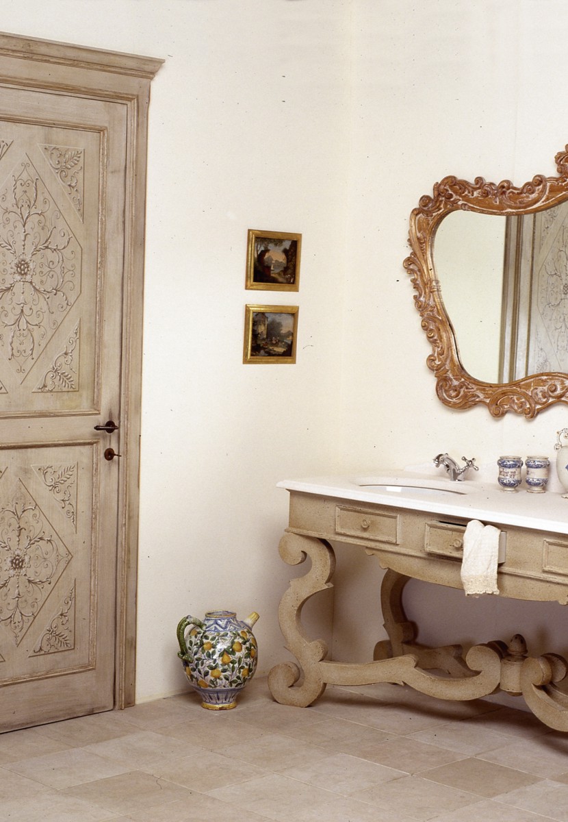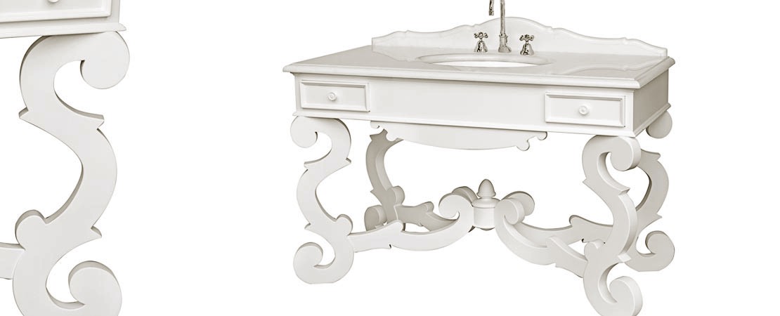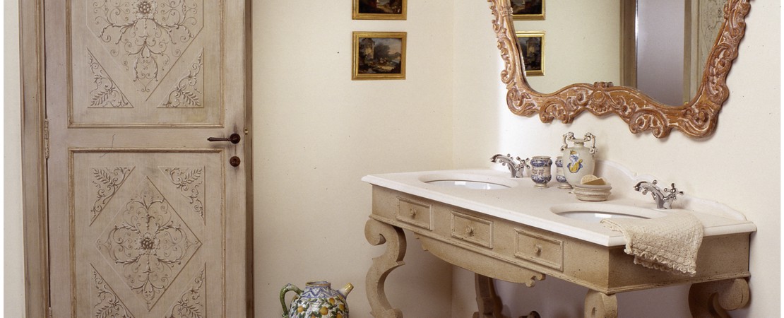 Vanity unit in wood with 2 drawers, with marble or travertine top