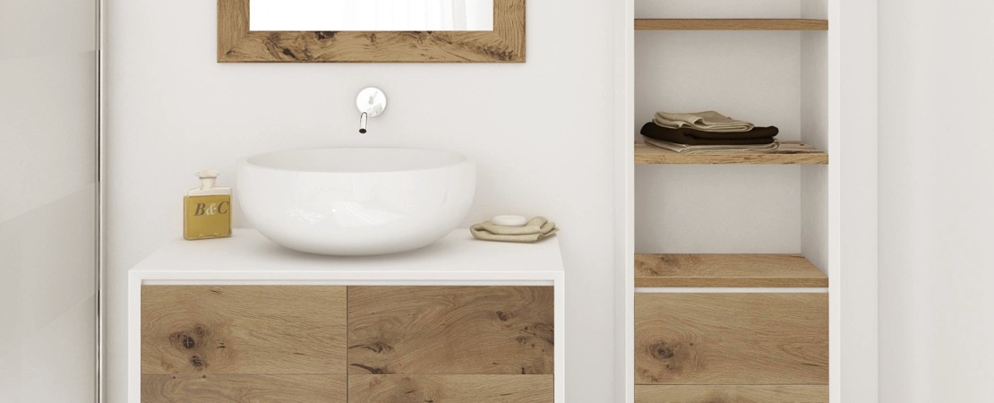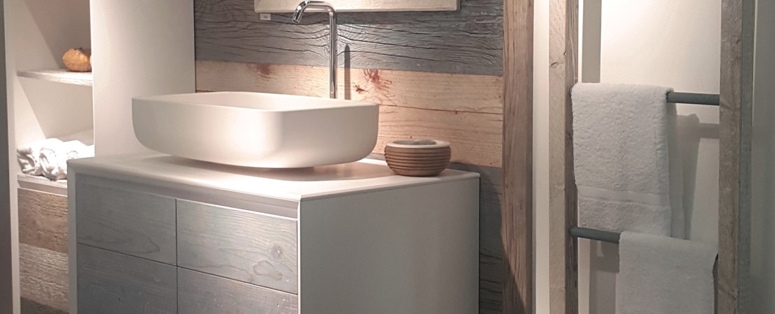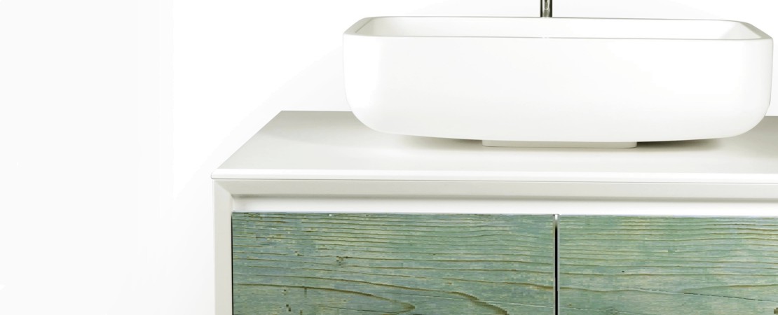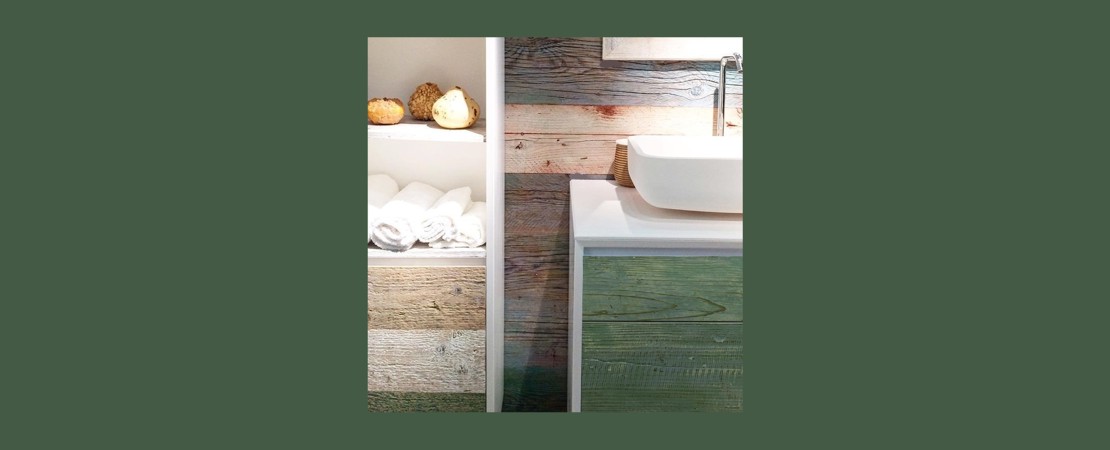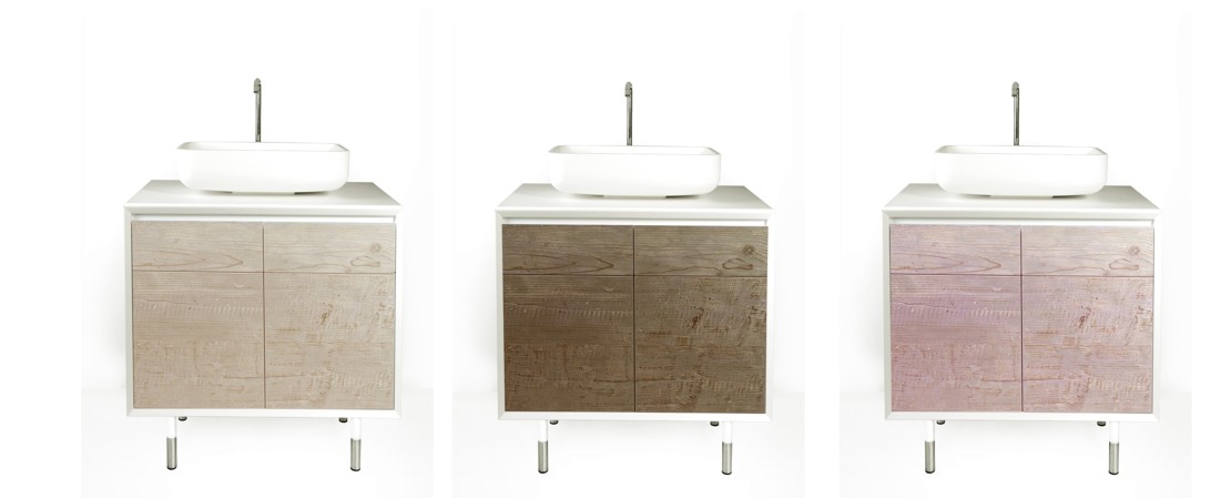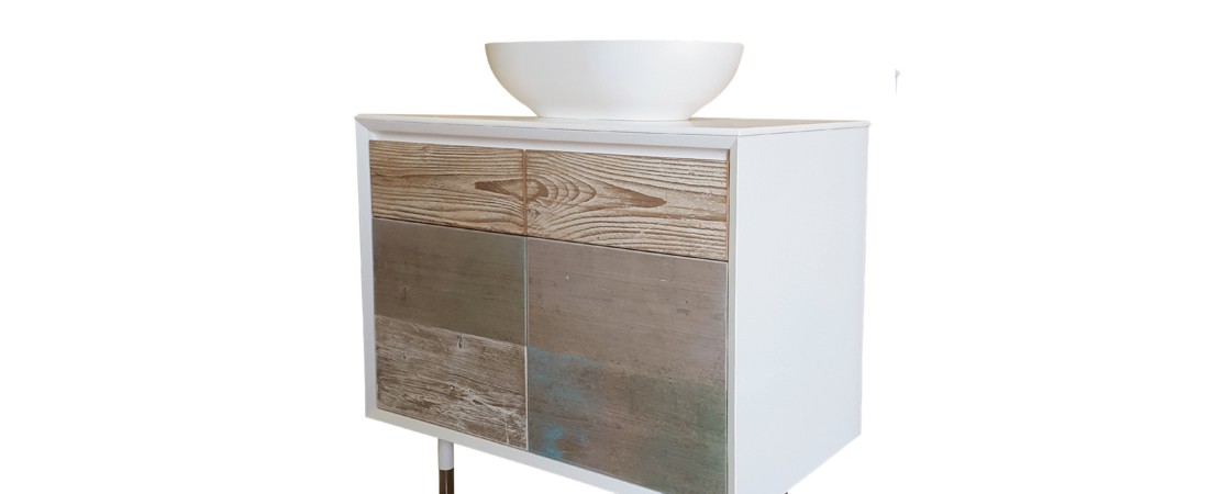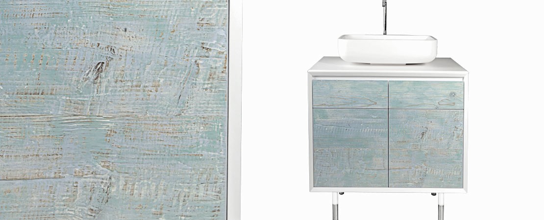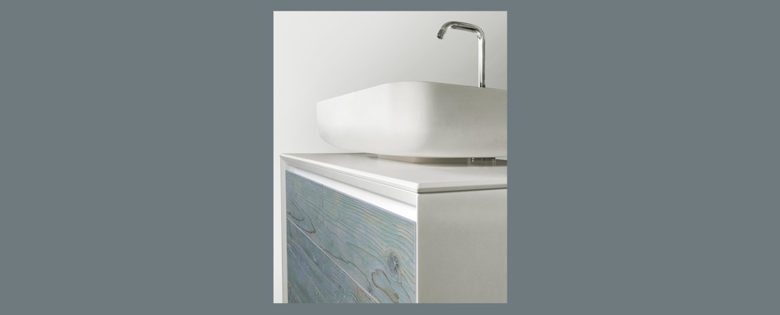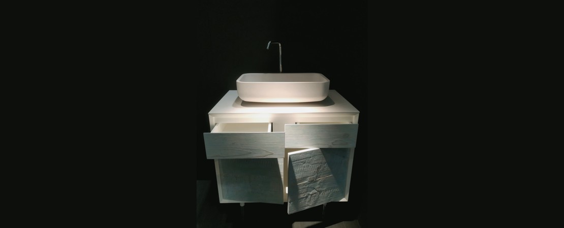 Vanity unit 2262/80 in matt lacquered finish with drawers and doors in reclaimed fir wood with Stonelight top