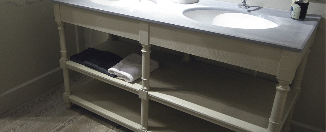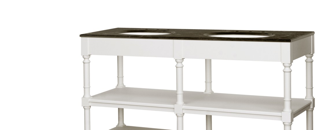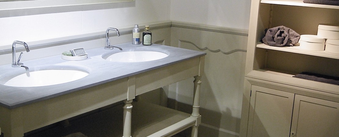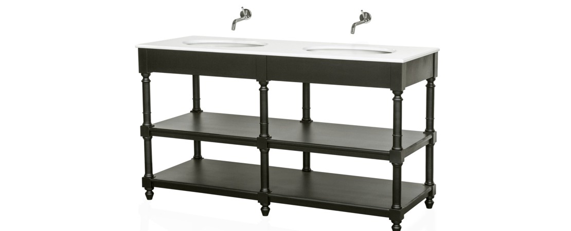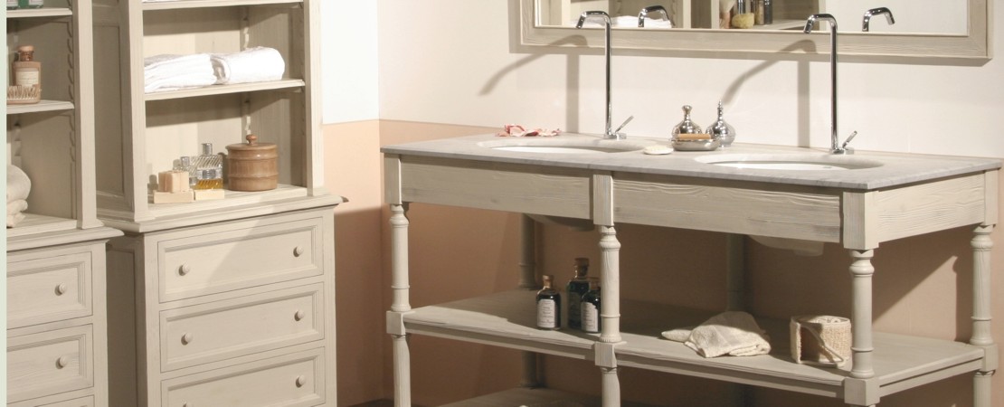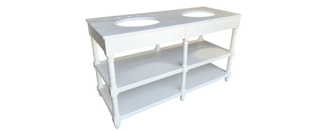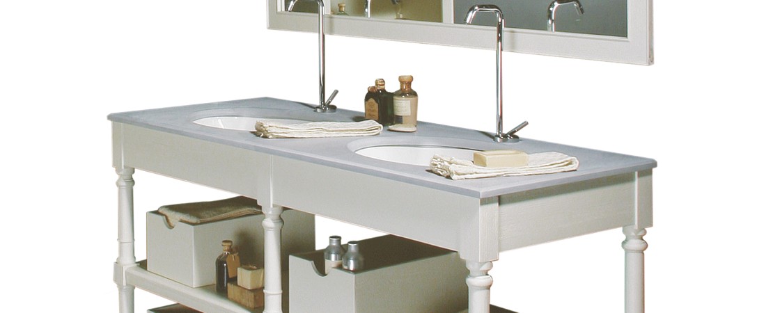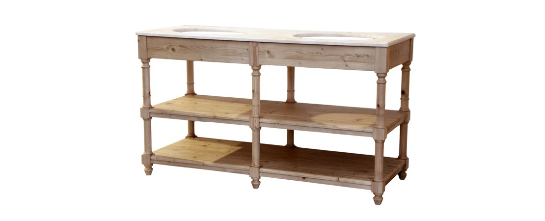 Vanity unit 4351 double basin in wood with mirror and marble top
