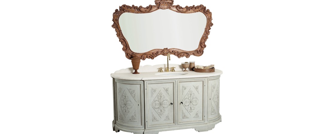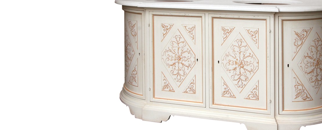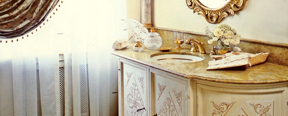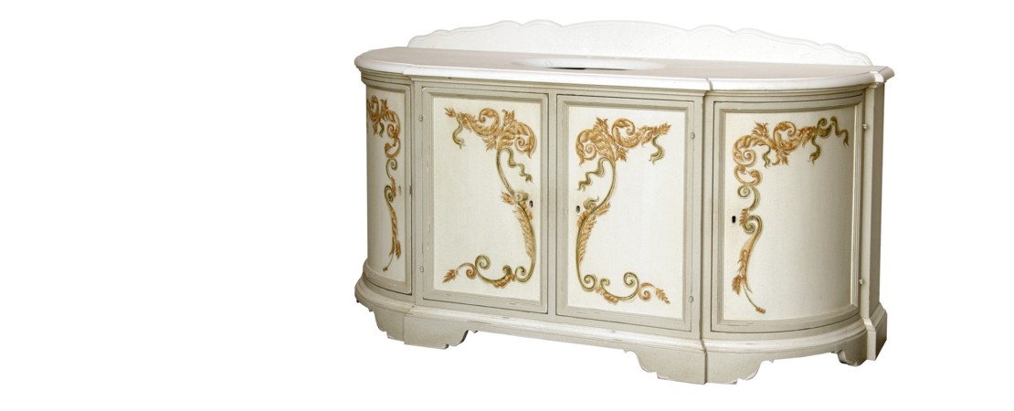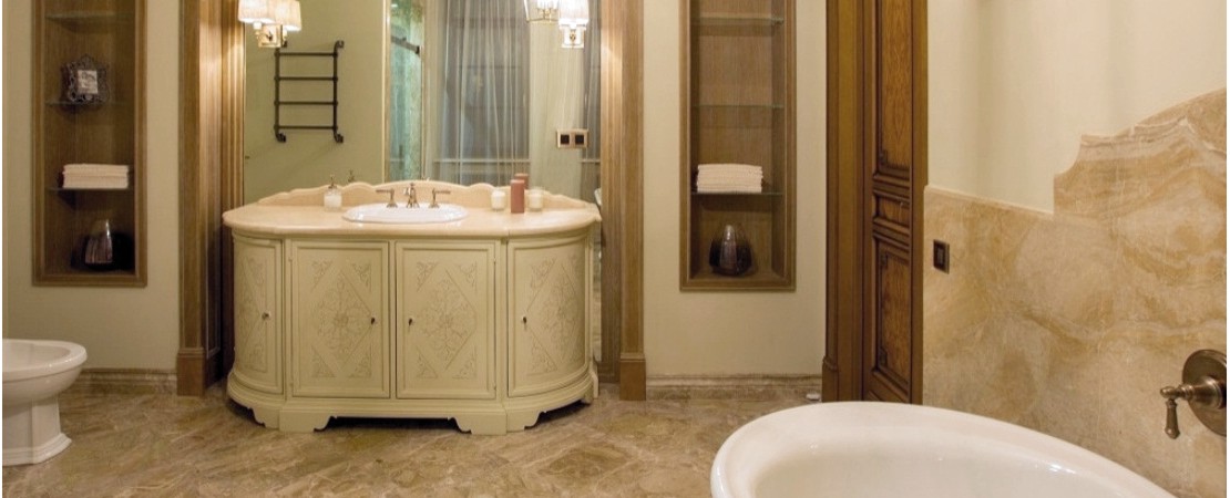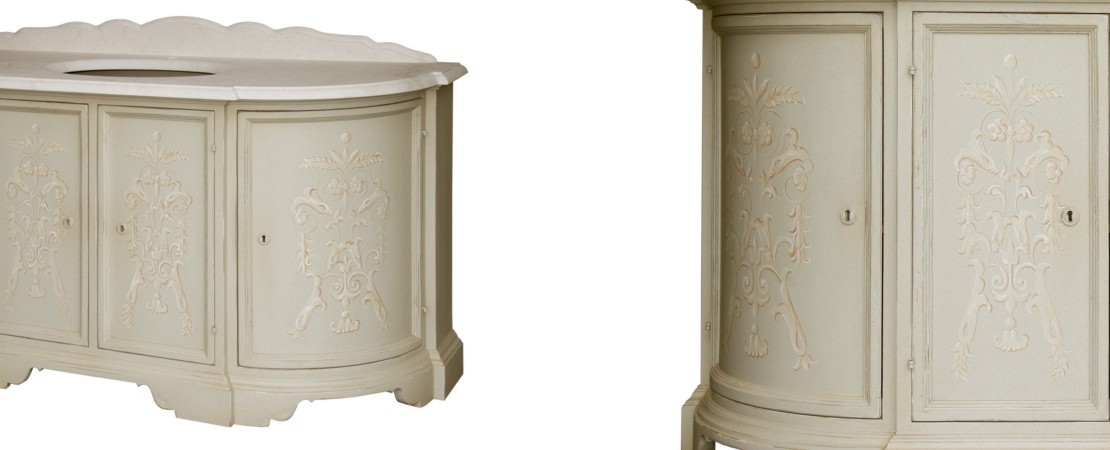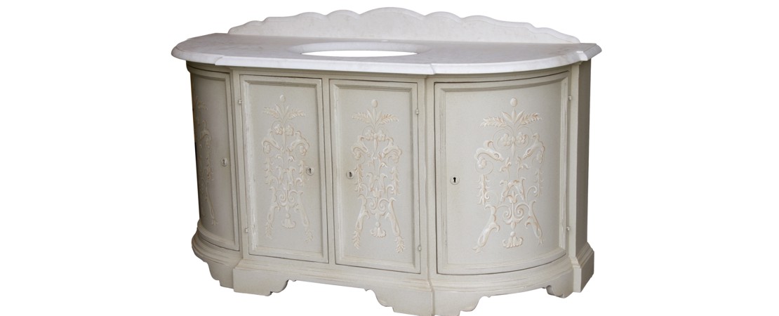 Vanity unit 8537 in wood with 4 doors, with marble or travertine top