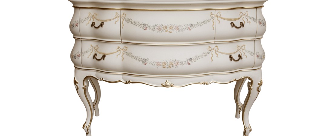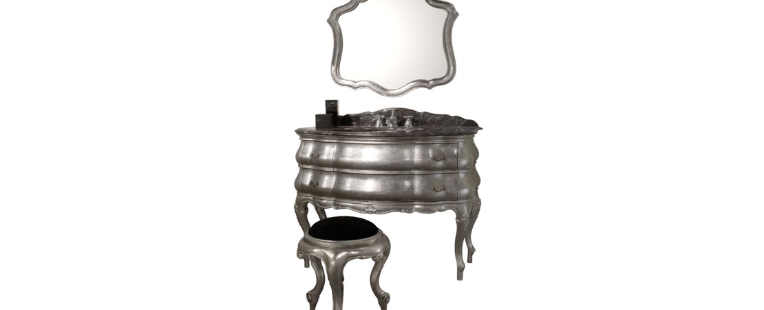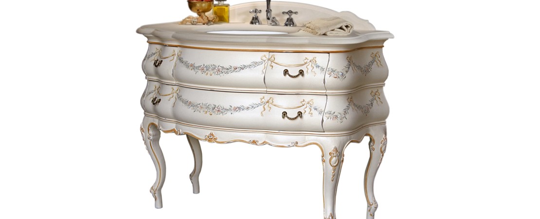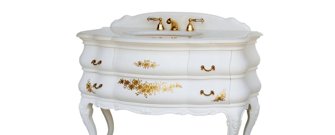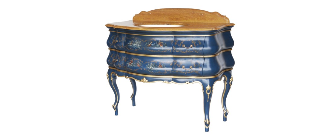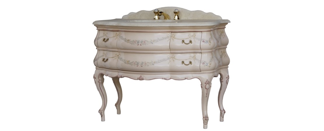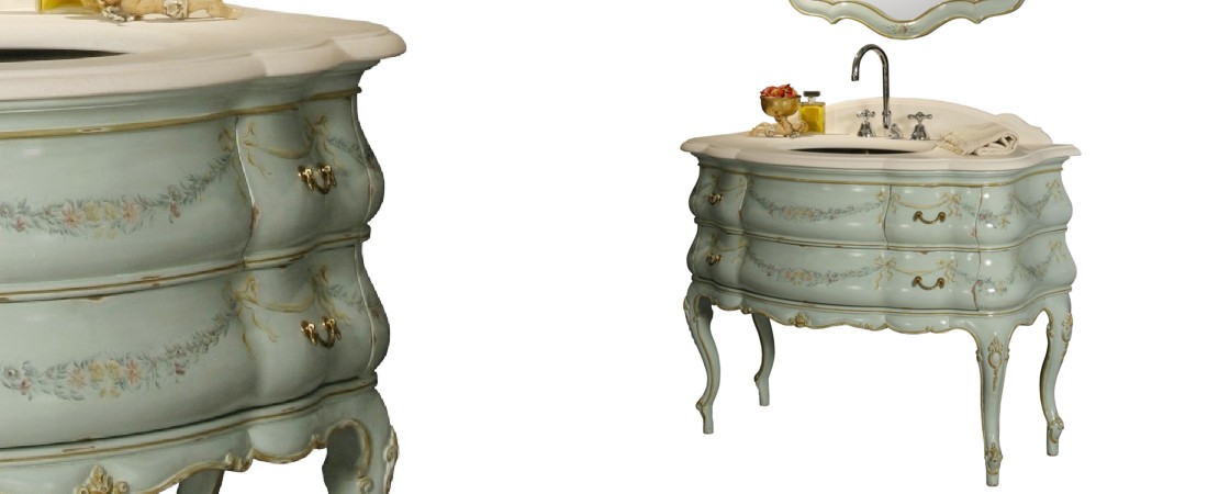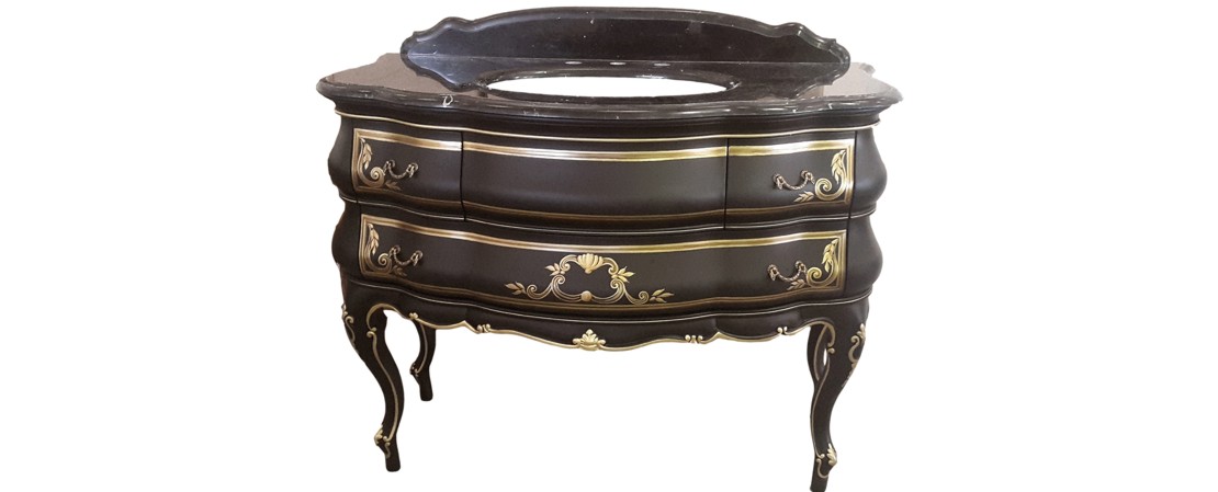 Vanity unit in carved wood with 3 drawers, with marble or travertine top