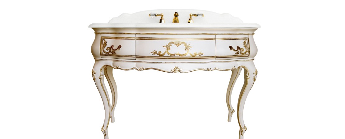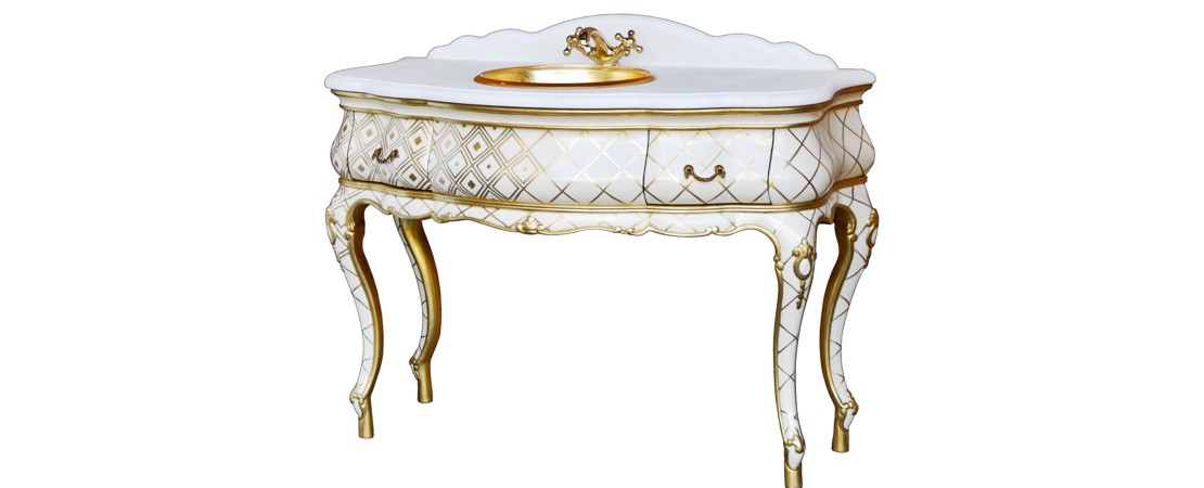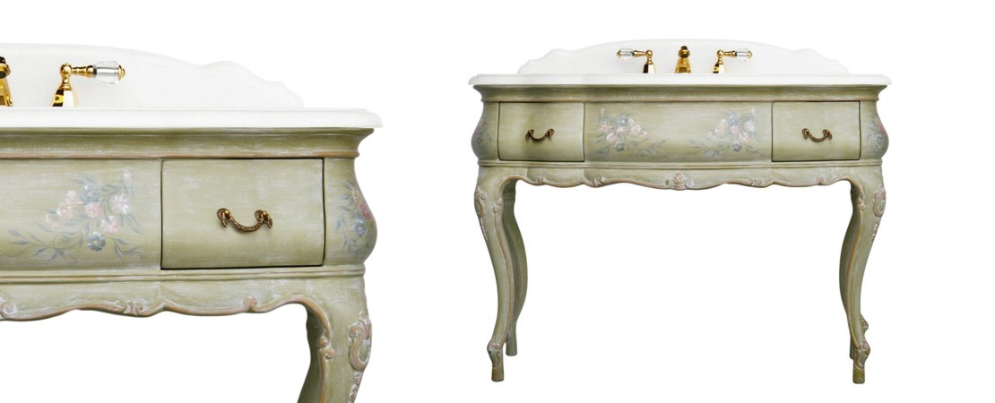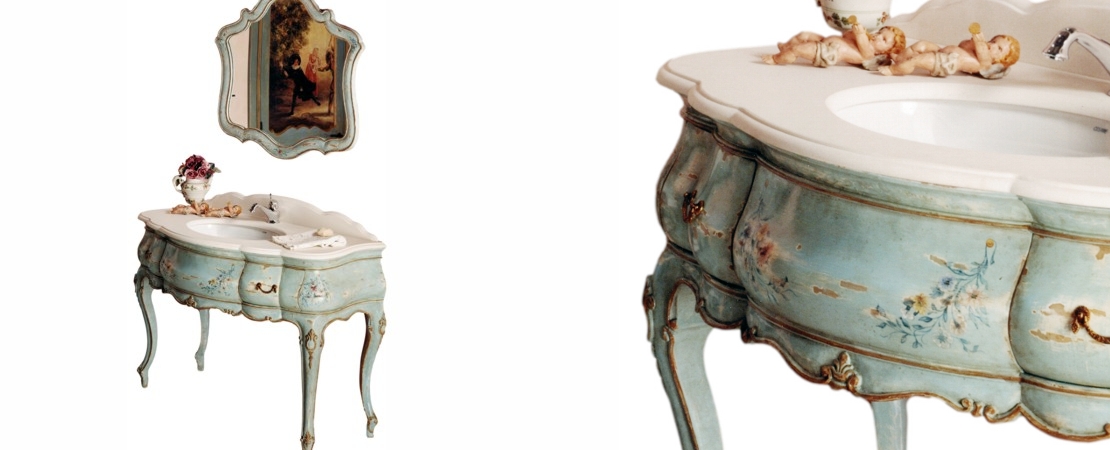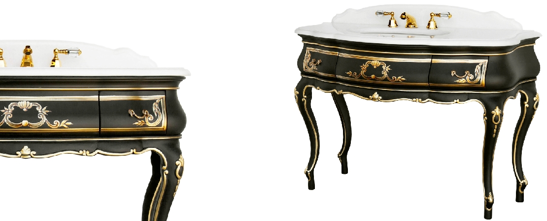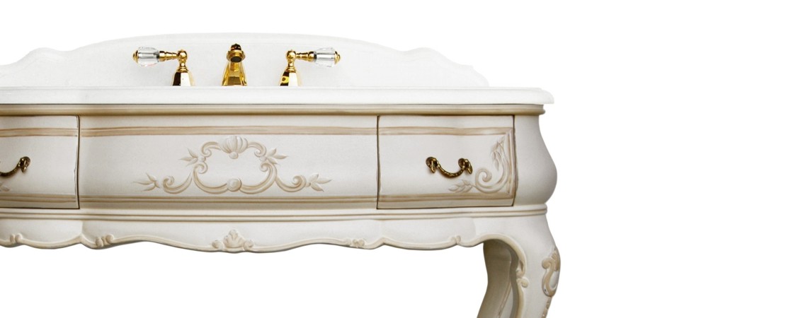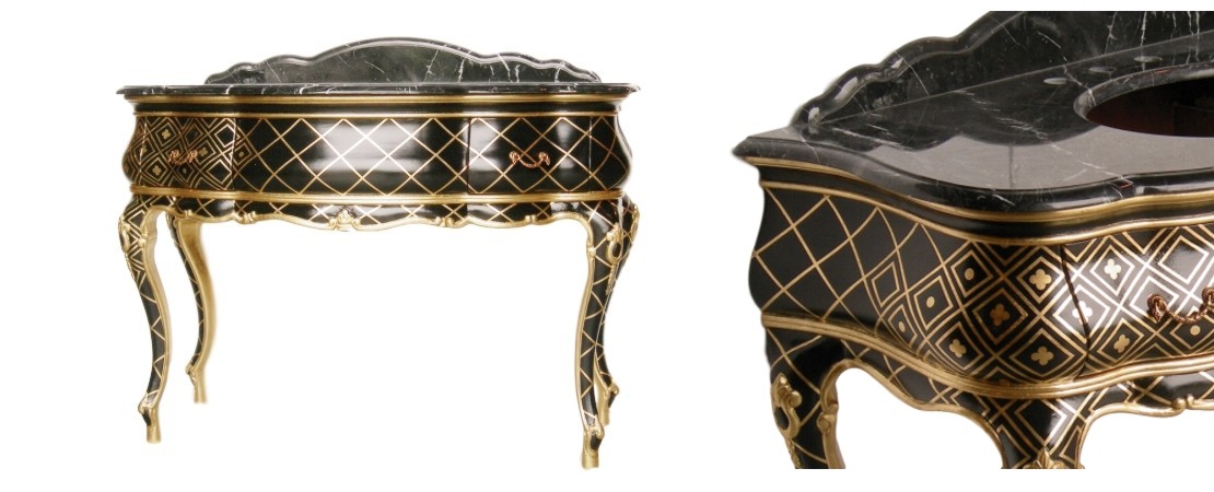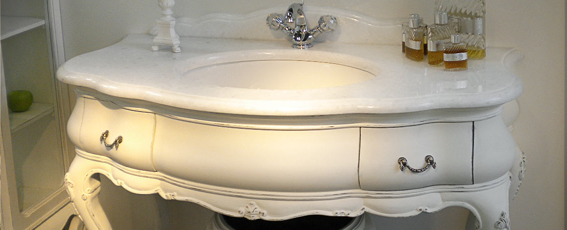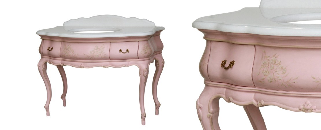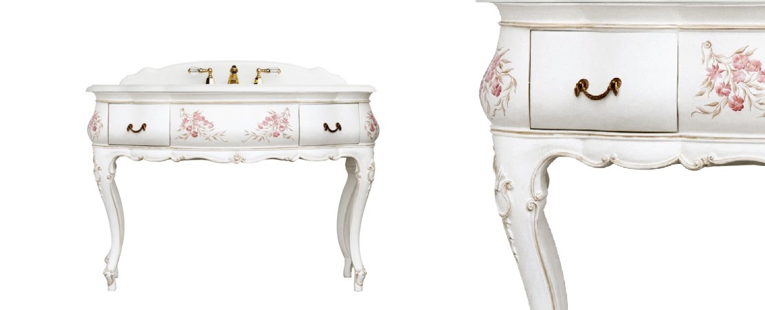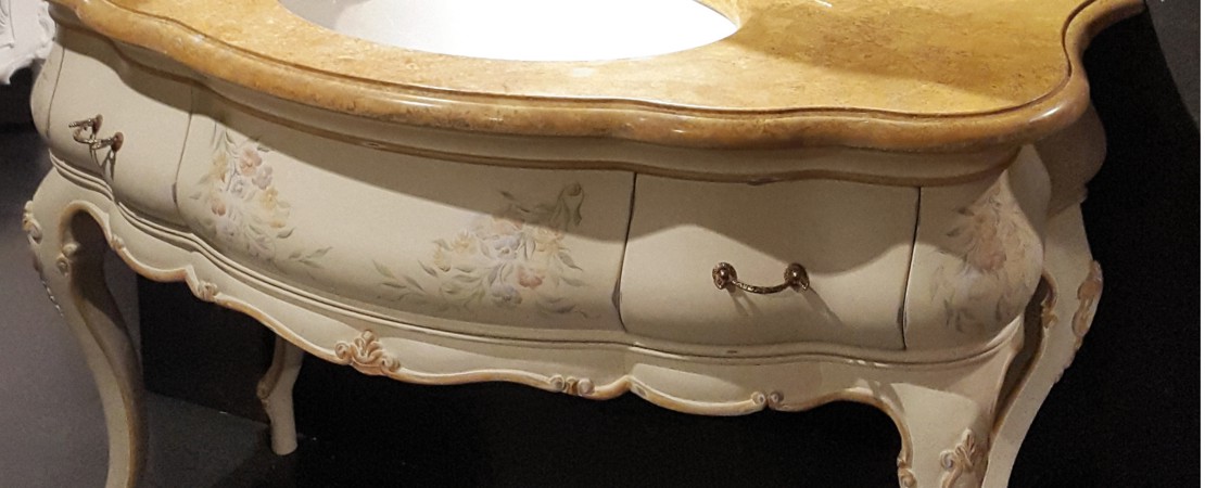 Vanity unit 8560 venetian style in carved wood with 2 drawers, and marble or travertine top