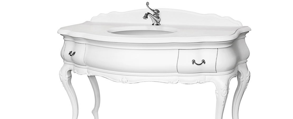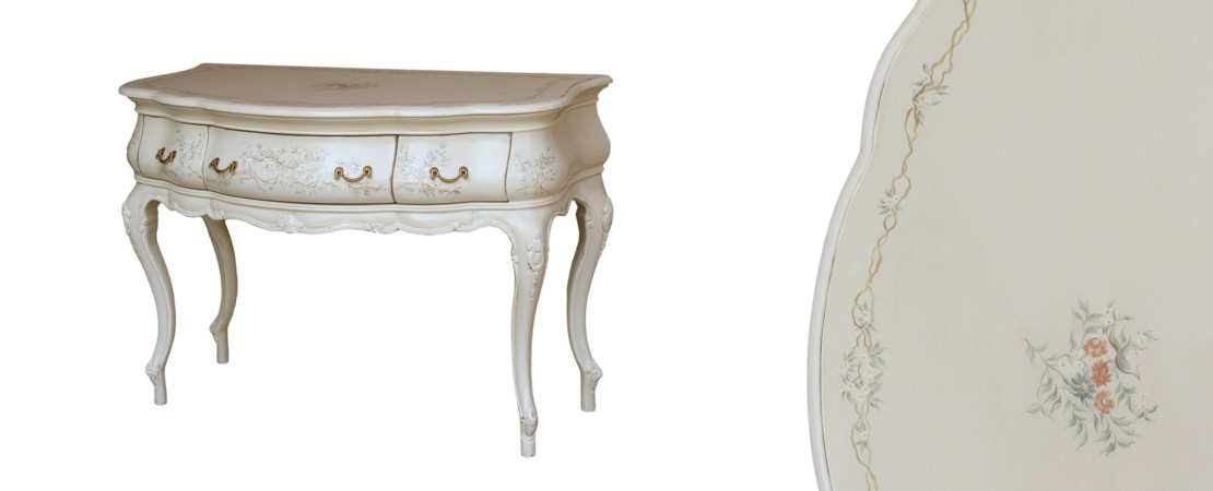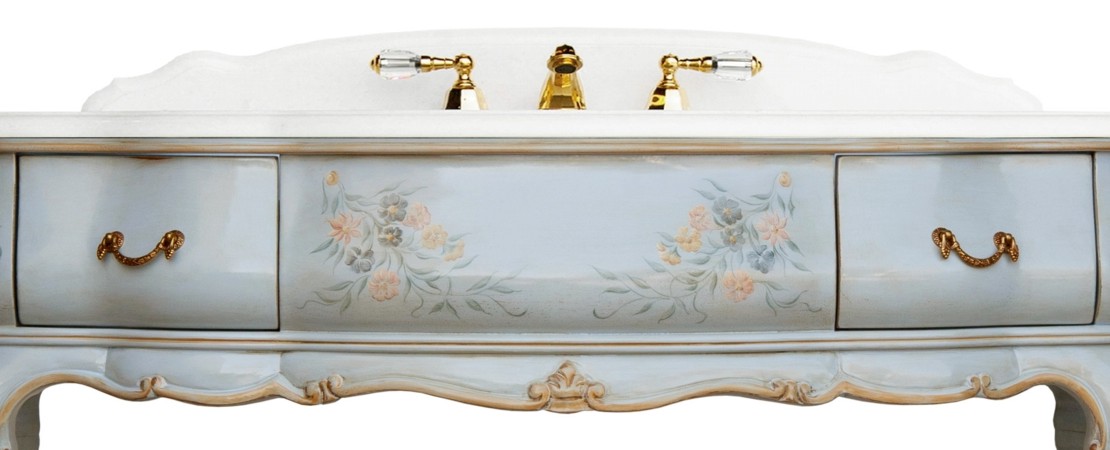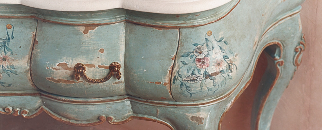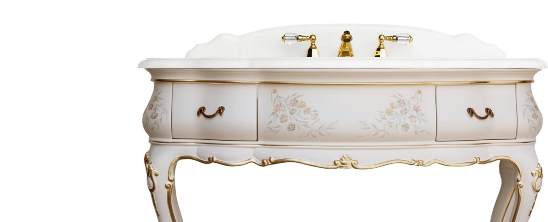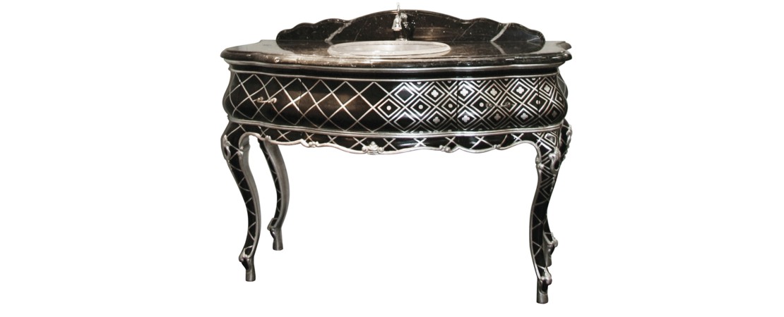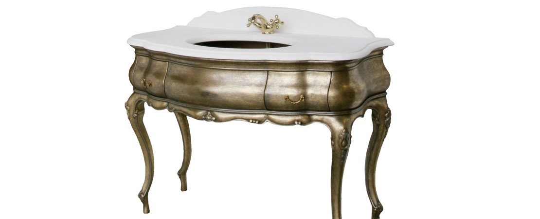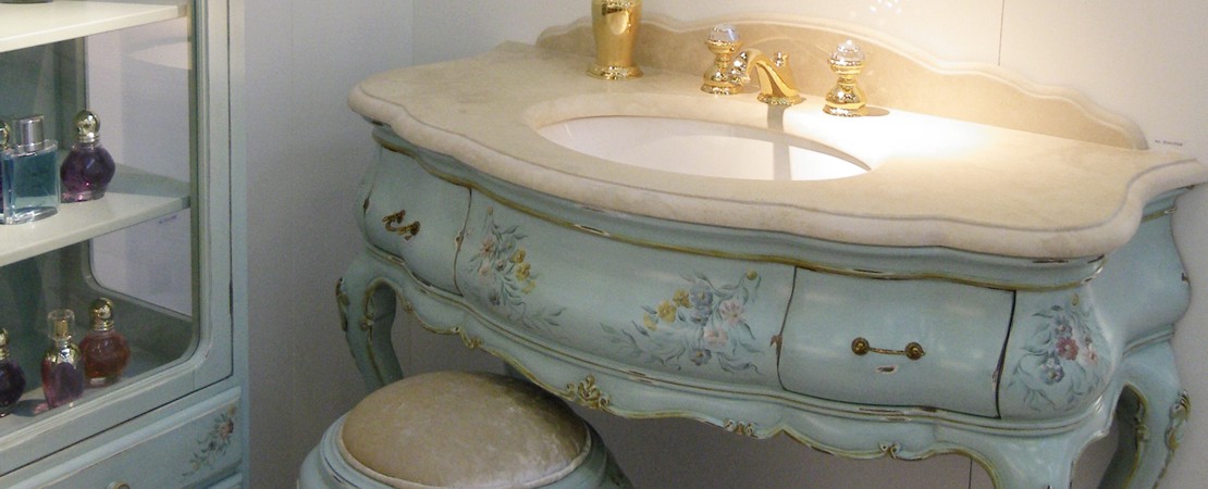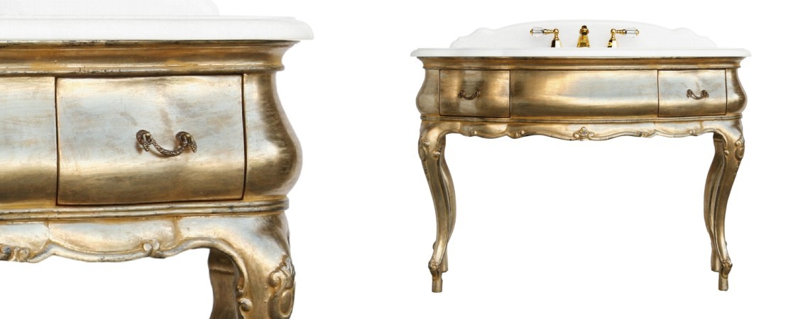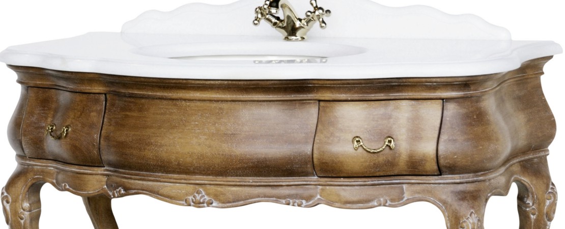 Vanity unit 8560 venetian style in carved wood with 2 drawers, and marble or travertine top