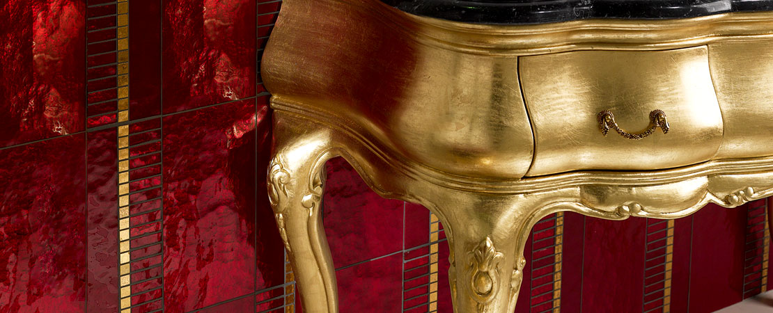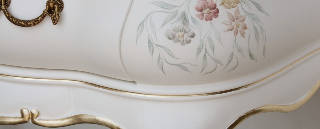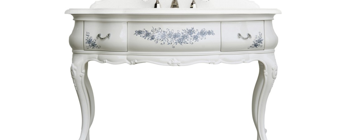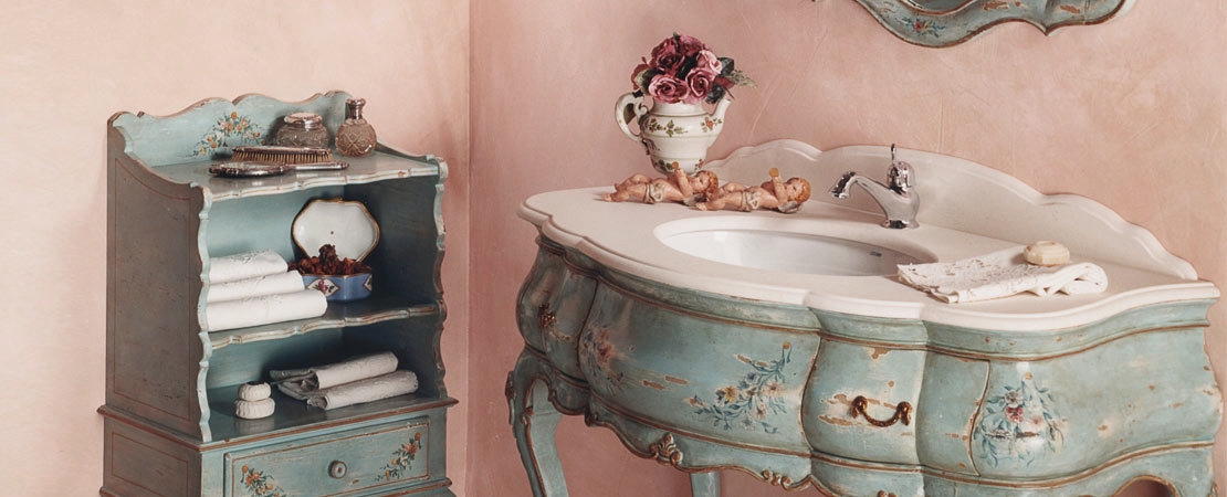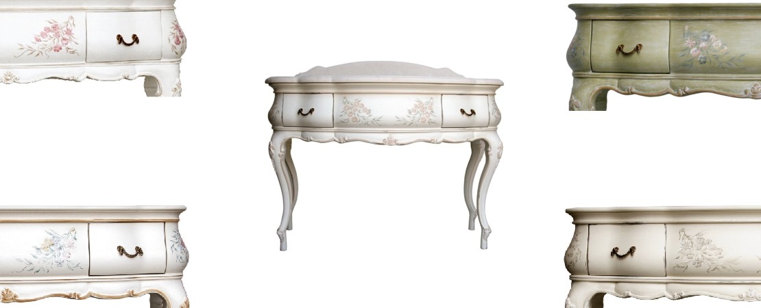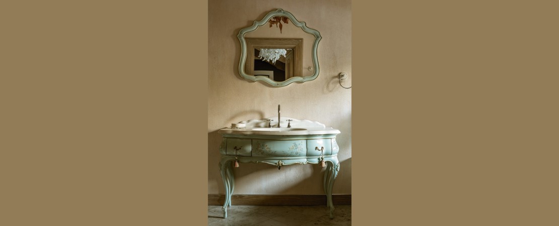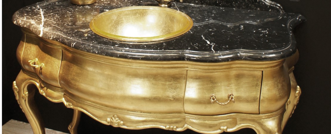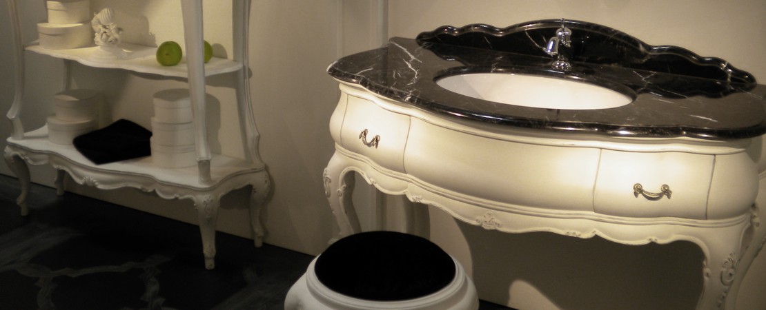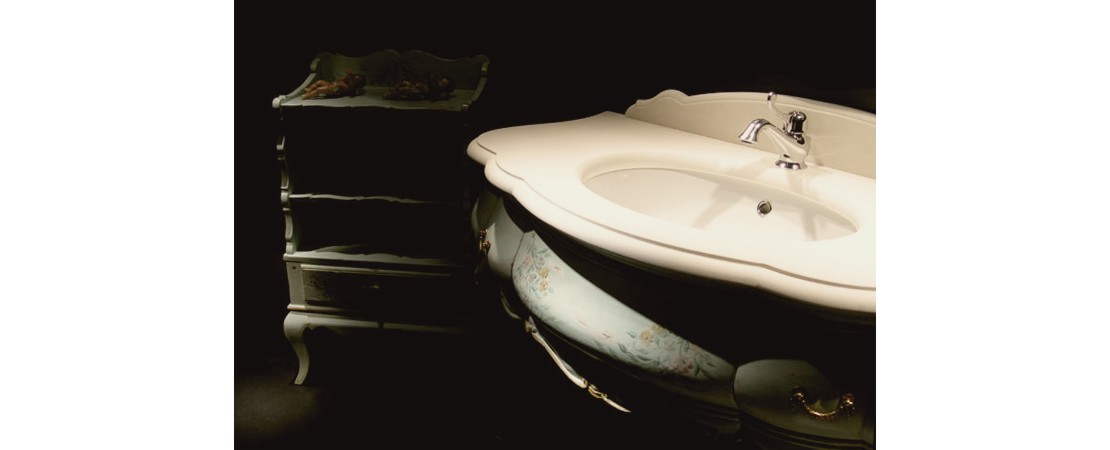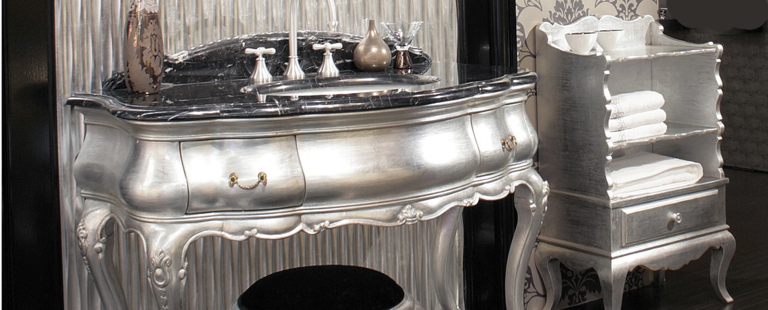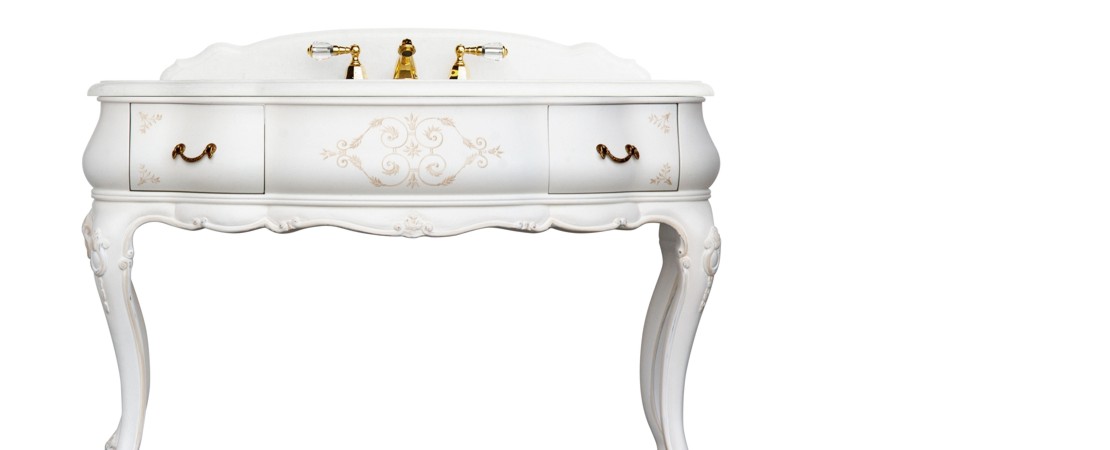Vanity unit 8560 venetian style in carved wood with 2 drawers, and marble or travertine top