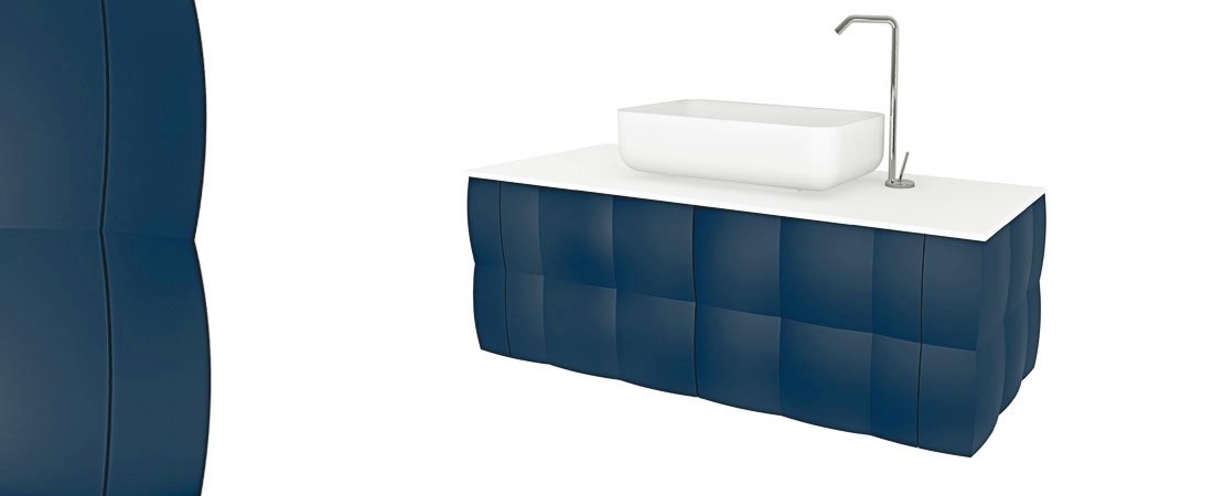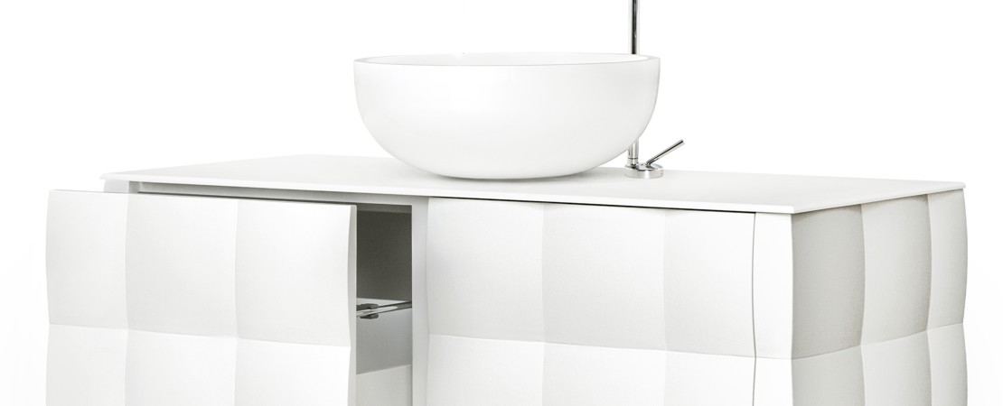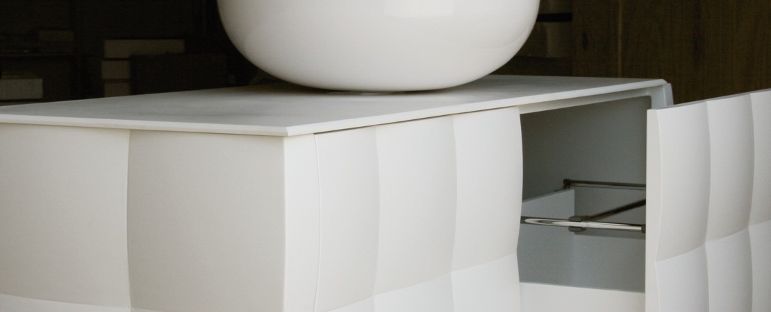 Console da bagno 2920 in MDF carb con 2 cassetti push, con piano in Stonelight