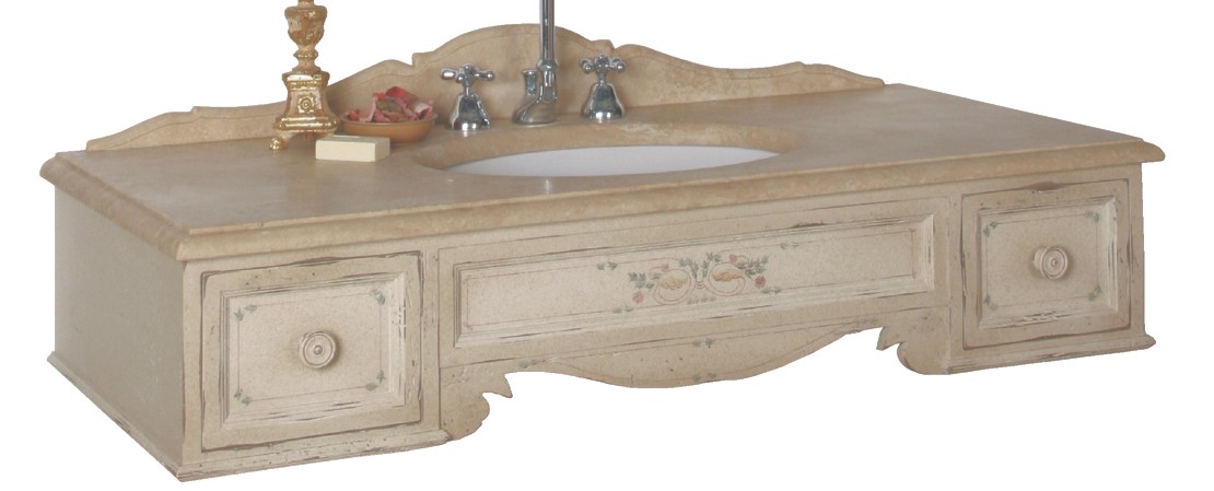 Console da bagno in legno con 2 cassetti e piano in marmo bianco Carrara