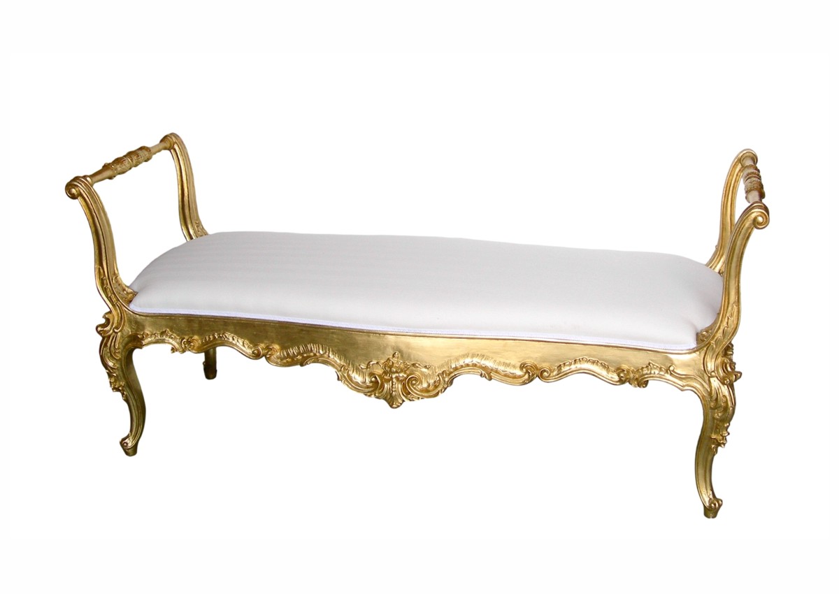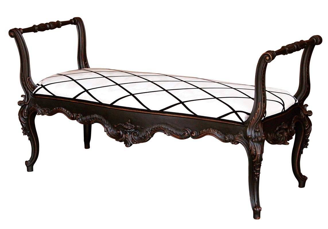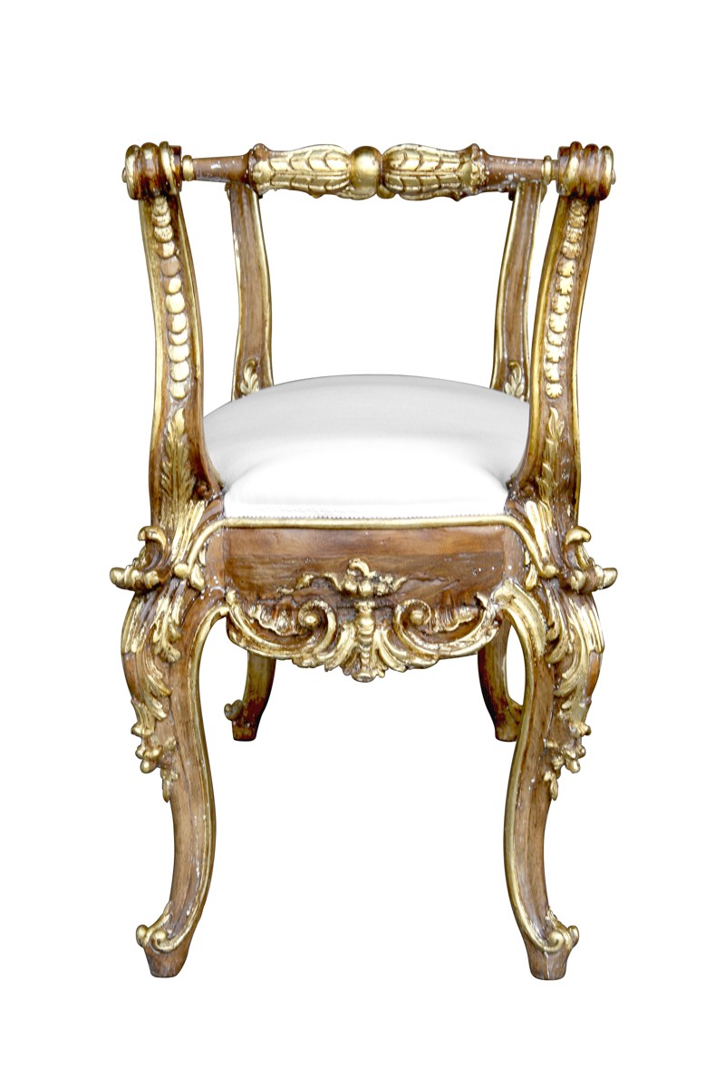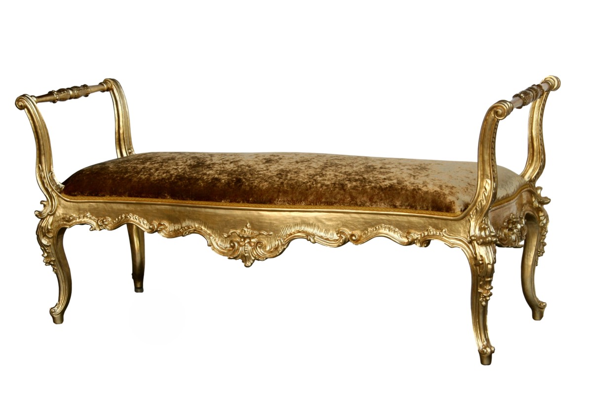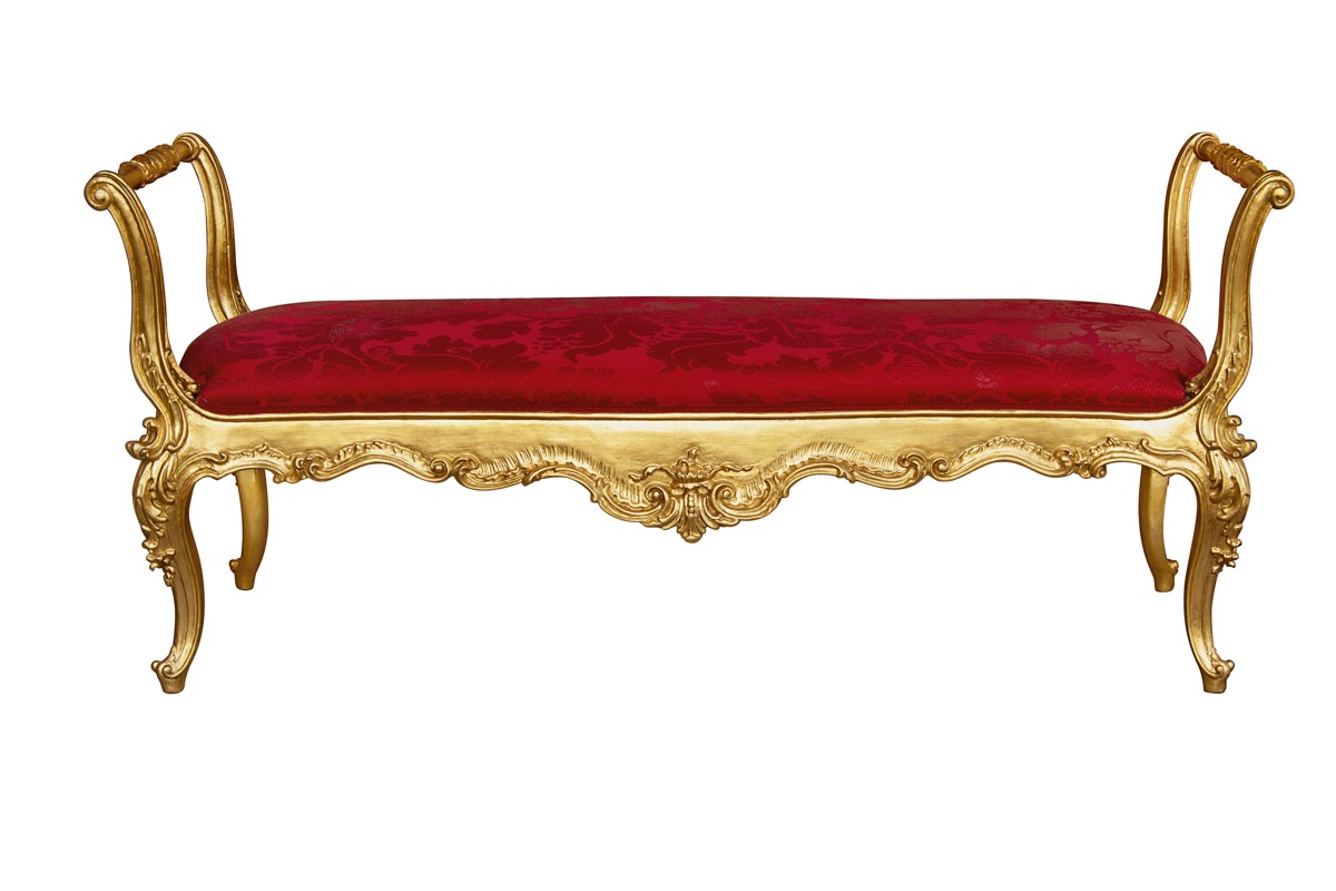 Divanetto in legno intagliato a mano con rivestimento in tessuto