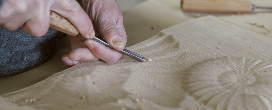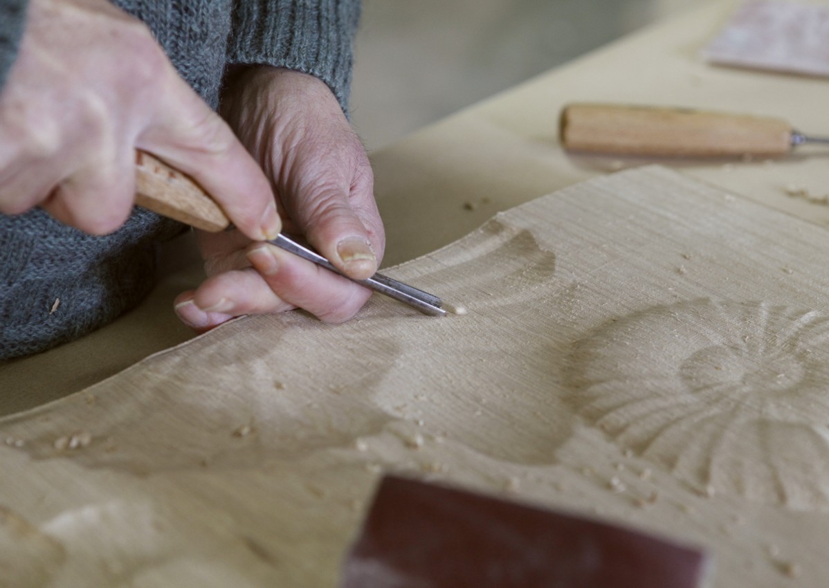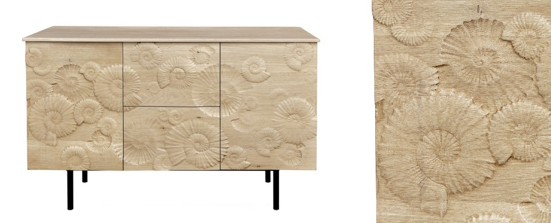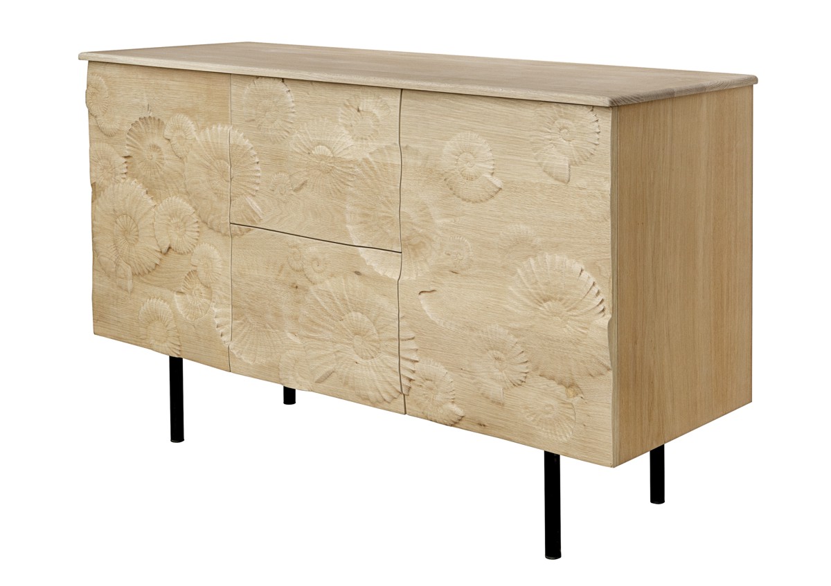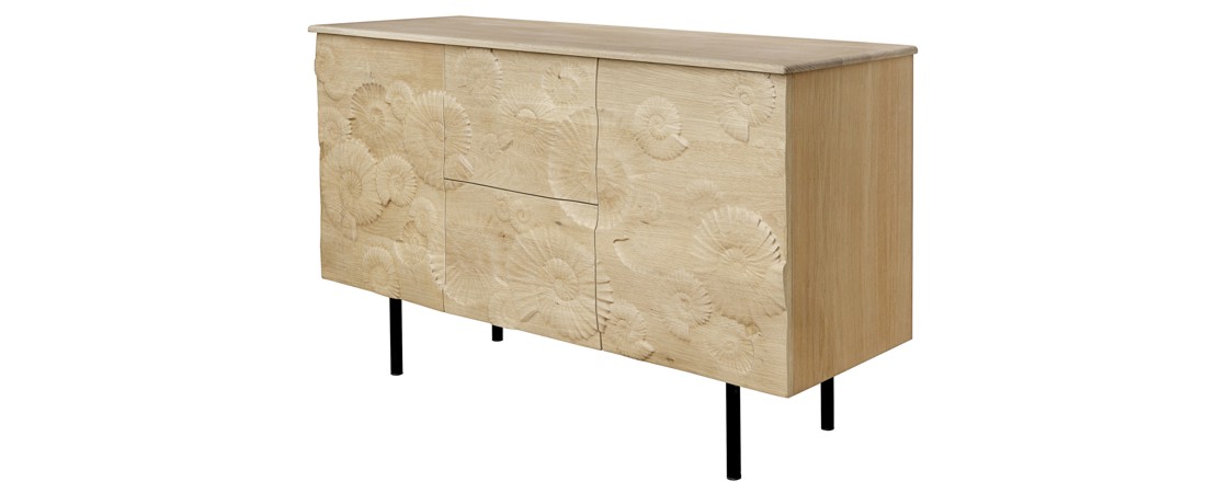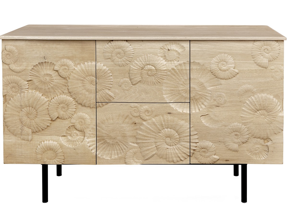 Mobile AMMONITI 2 ante 2 cassetti in ROVERE SCOLPITO in finitura naturale a cera