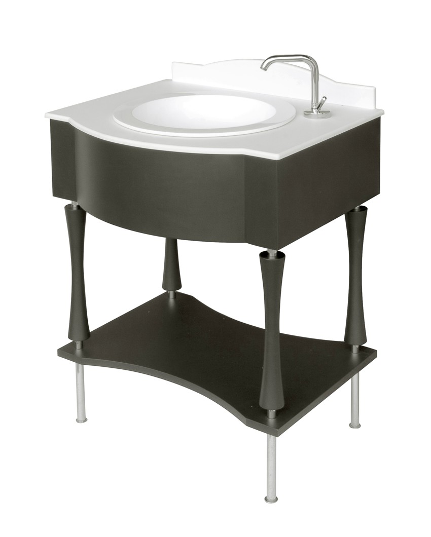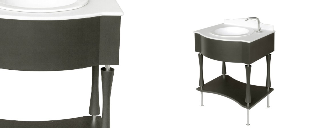 Mobile da bagno in legno con parti in ottone cromato e piano in Stonelight