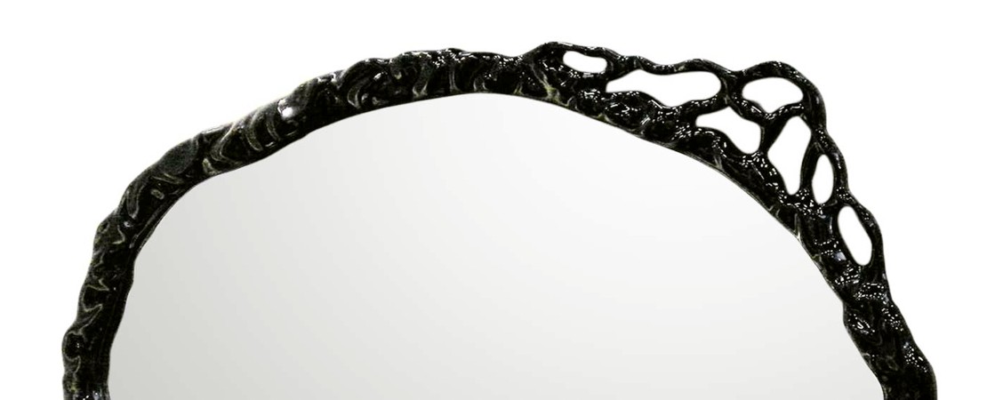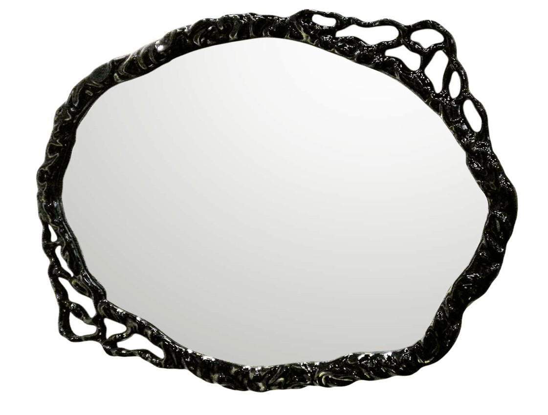 Specchio ovale con cornice in legno intagliato